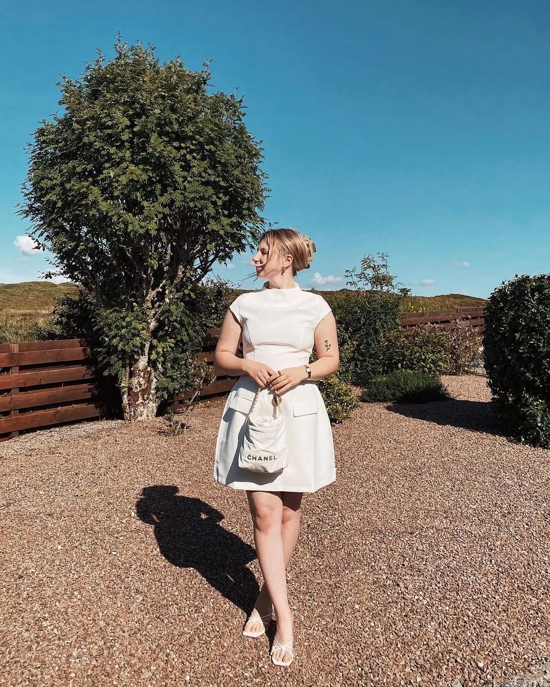 Ready for your summer wardrobe. Featuring a high neckline, capped sleeves and the most flattering skirt to give you the ultimate cinched