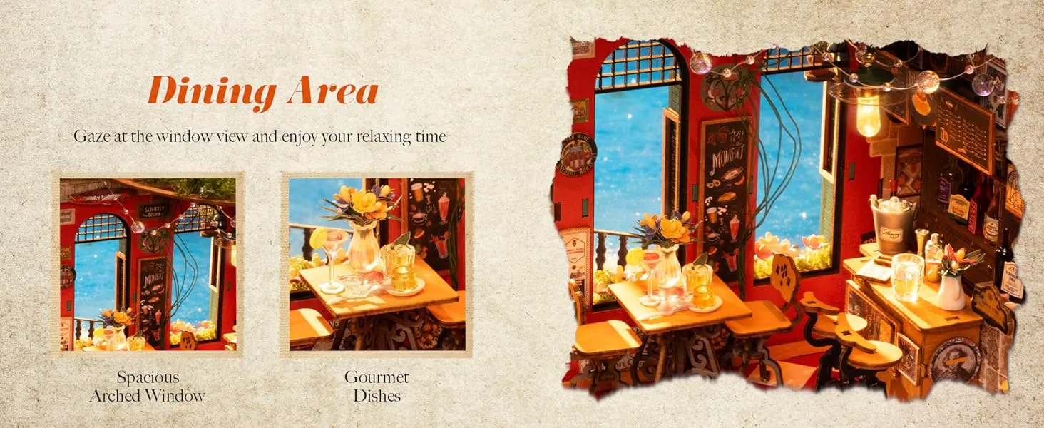 • Nostalgia in Every Detail: Embossed stone textures, stained-glass acrylic windows, and wrought-iron lattices