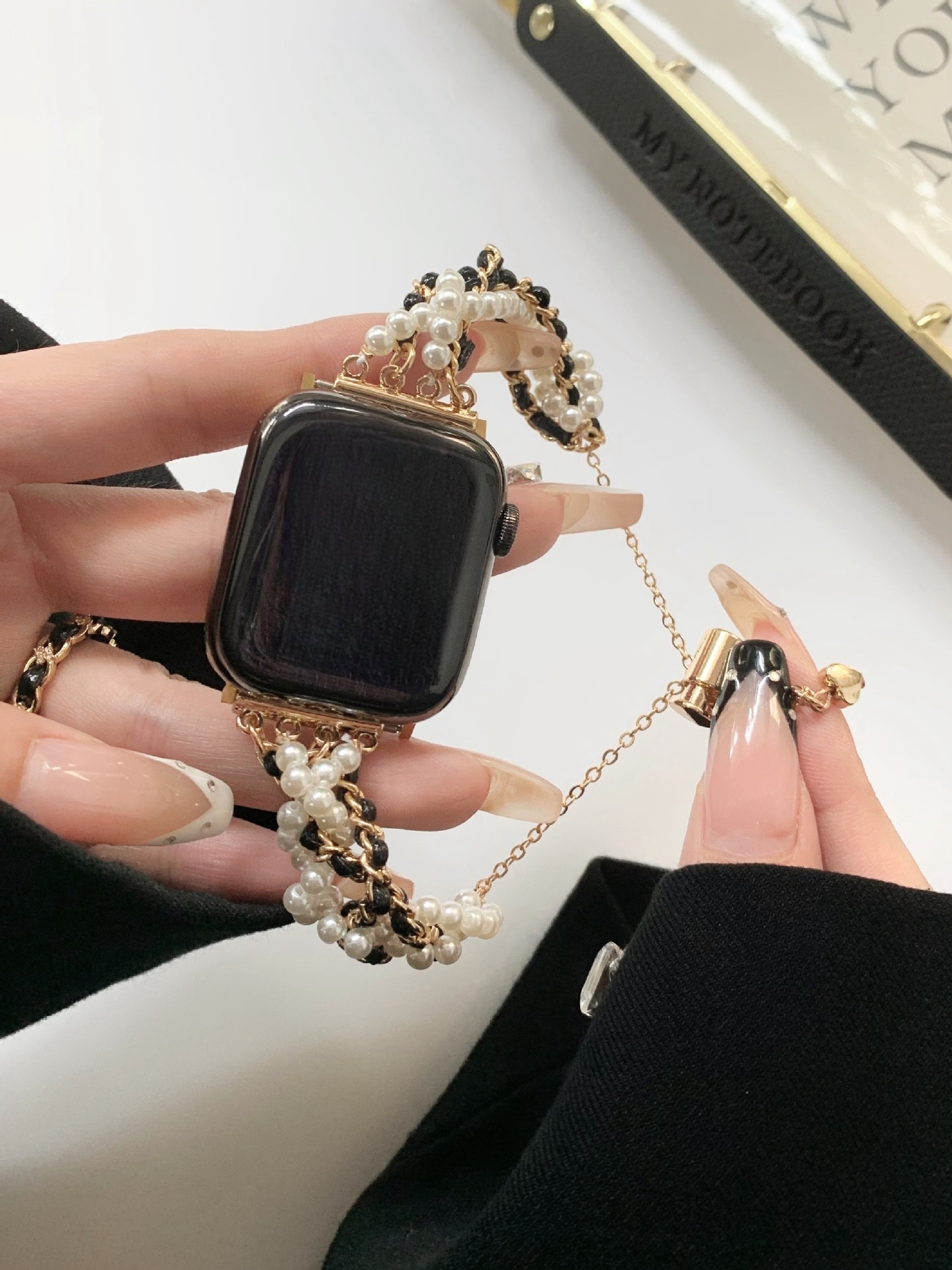 Luxurious Detailing: Admire the intricate detailing of the pearl chain, meticulously crafted to exude opulence and
