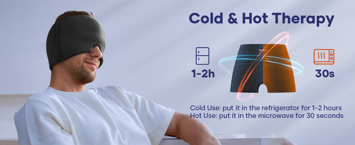 - Dual Hot and Cold Relief Cap: The migraine mask offers both hot and cold options. For cold relief, refrigerate the hat for 1 hour. For hot relief, microwave at room temperature for 30 seconds. Refer to the instruction manual for details