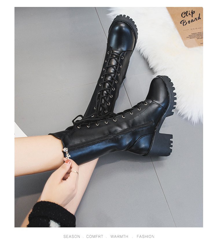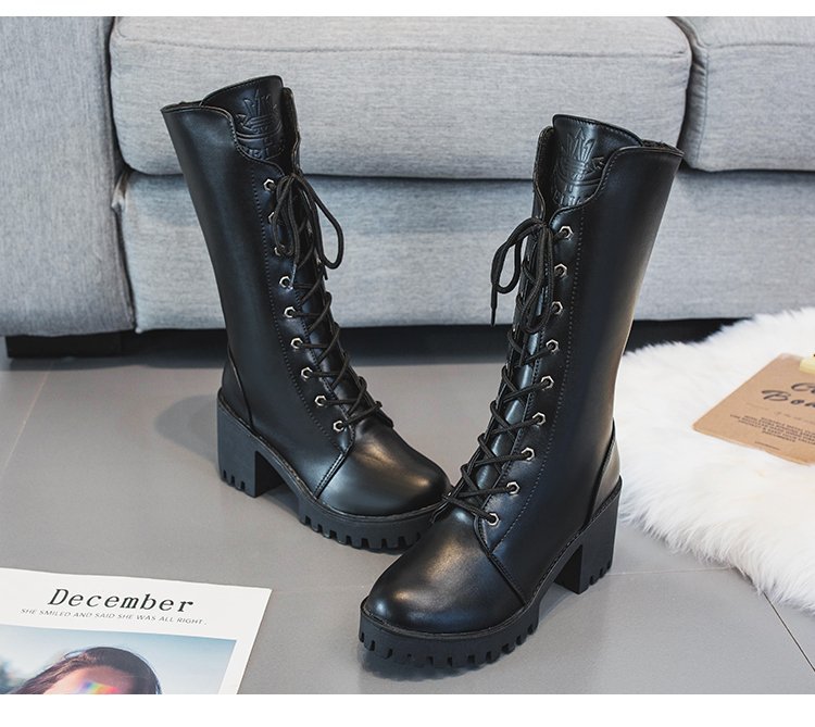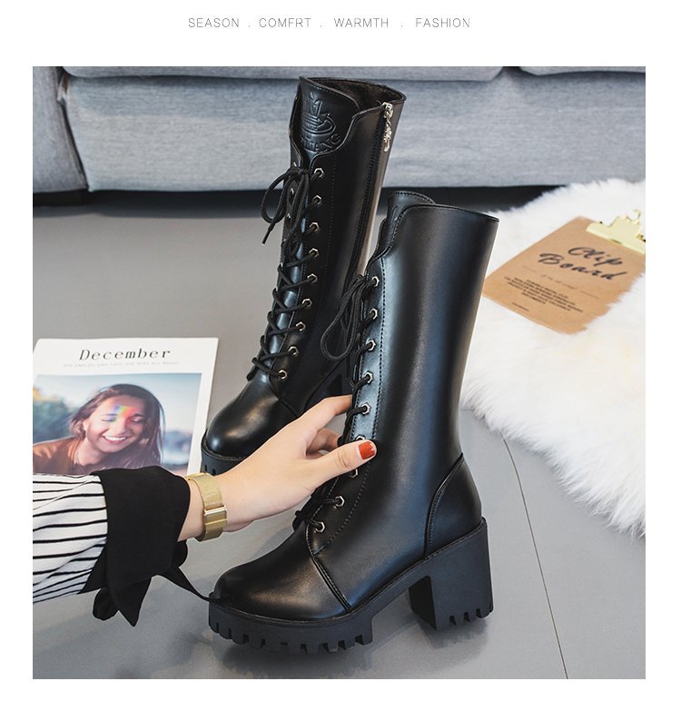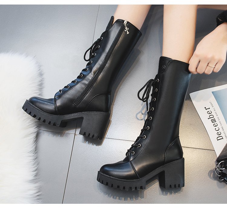Thick Bottom Increased By Lace-up Booties All-match Middle Tube Motorcycle Boots