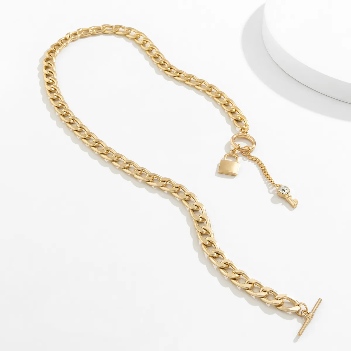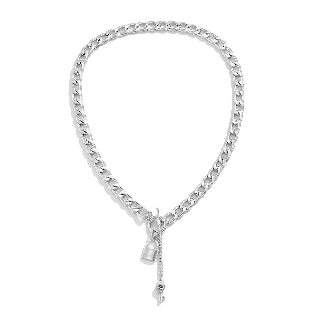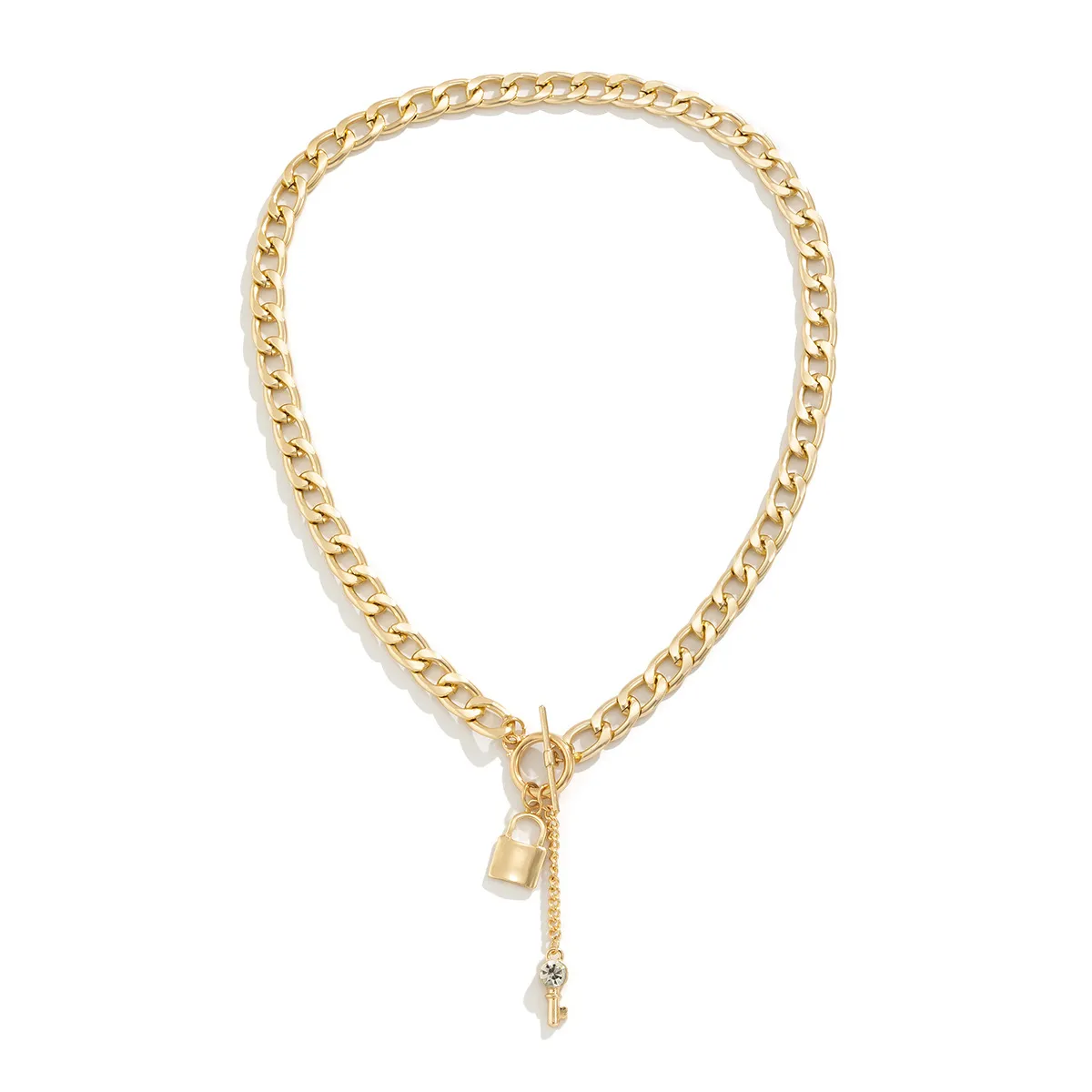 Elevate your style with this trendy thick chain necklace featuring a shiny lock and key pendant. Designed for women, this fashionable accessory adds a bold touch to any outfit. Perfect for casual or formal wear, it’s a must-have in your jewelry collection. Shop now for trendy ladies' accessories.