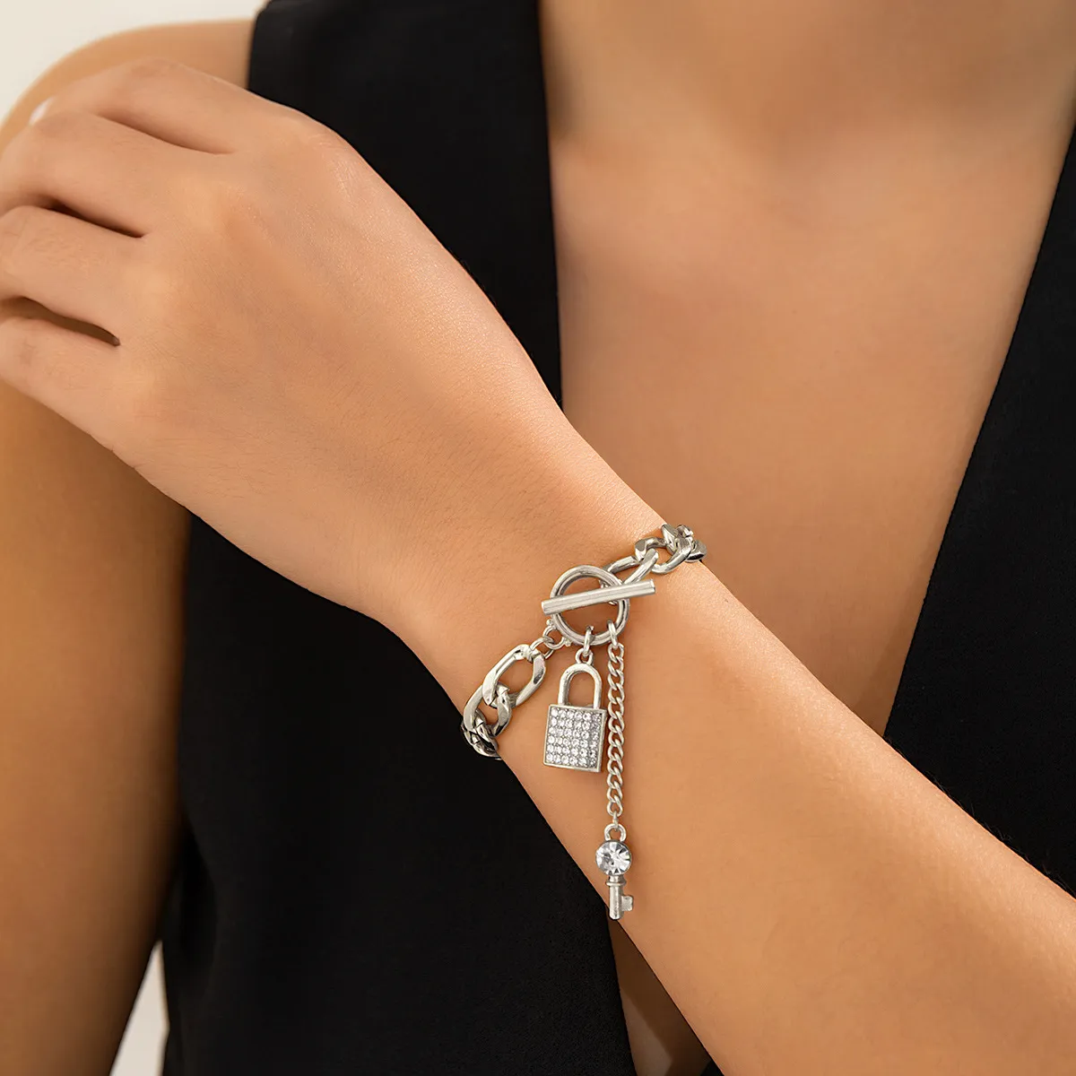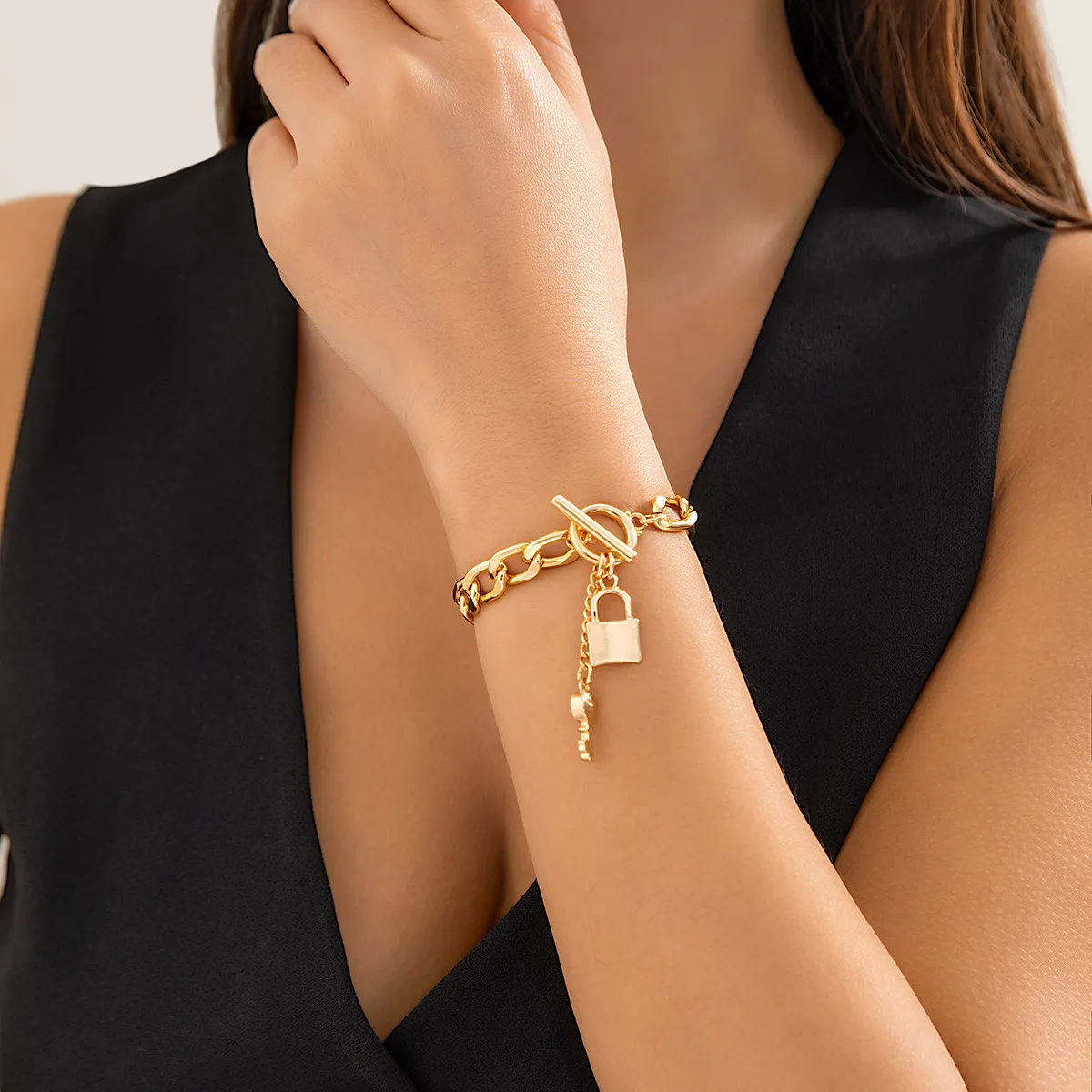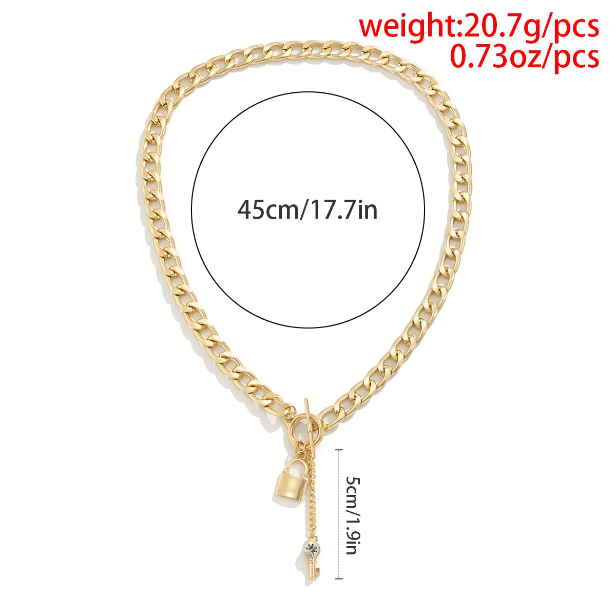 Elevate your style with this trendy thick chain necklace featuring a shiny lock and key pendant. Designed for women, this fashionable accessory adds a bold touch to any outfit. Perfect for casual or formal wear, it’s a must-have in your jewelry collection. Shop now for trendy ladies' accessories.
