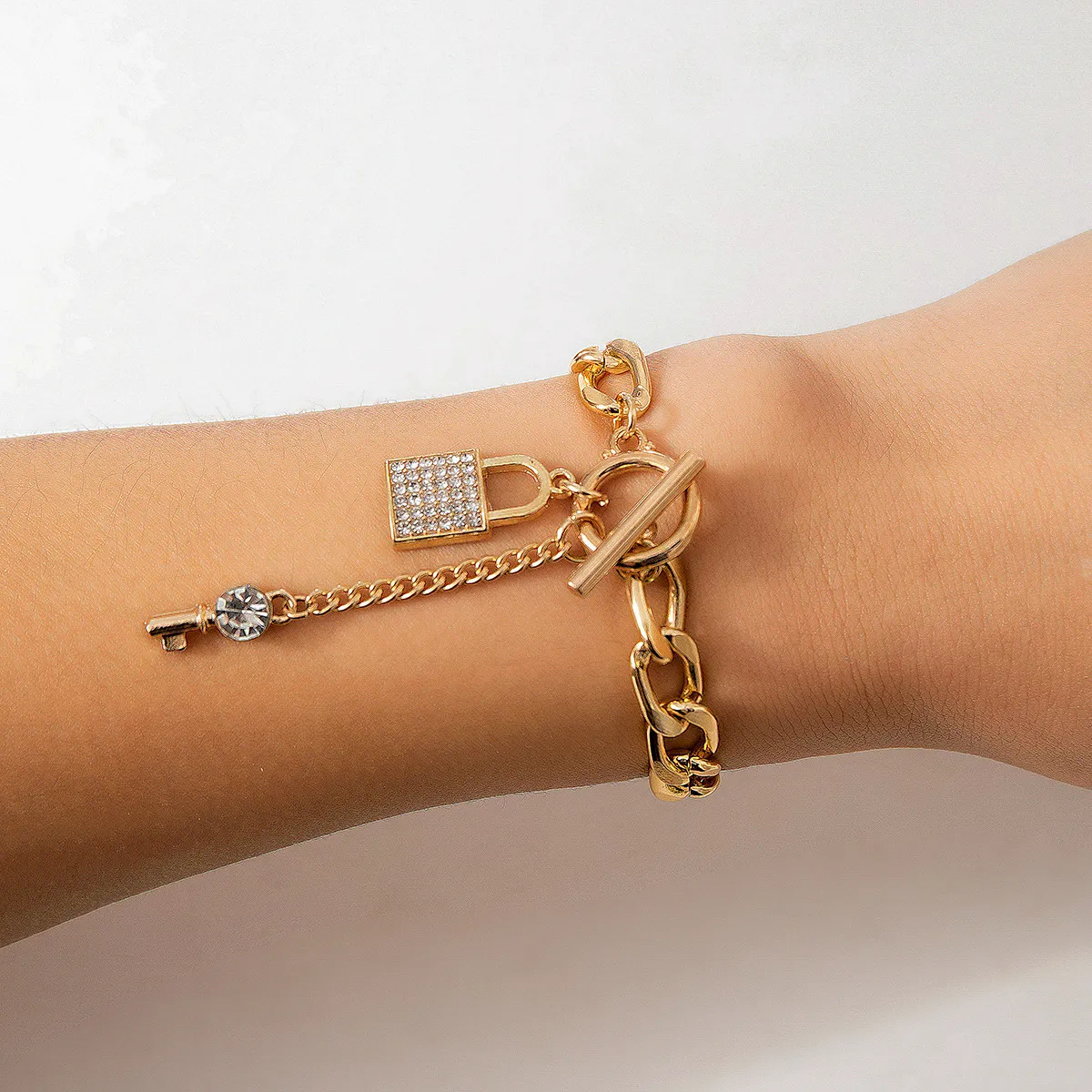 Thick Chain With Shiny Lock And Key Pendant Necklace For Women