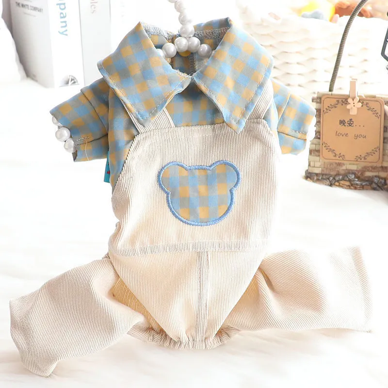 Elevate your pet’s wardrobe with our thin plaid shirt overalls, a perfect combination of style and practicality for your furry friend. This