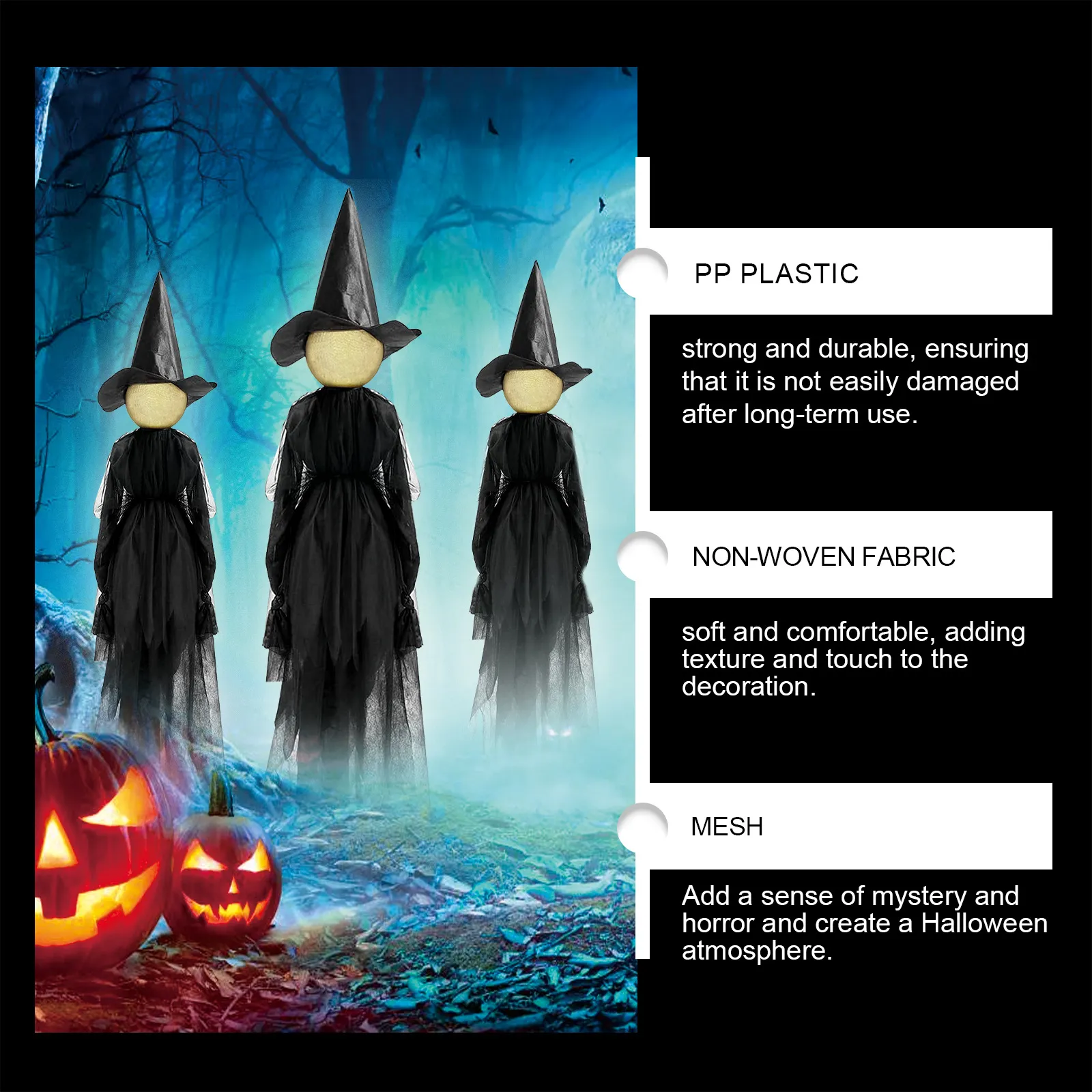 Whether used as standalone decor pieces or as part of a larger Halloween display, these witch costumes bring the essence of the classic witch to life, making them perfect for Halloween parties, trick-or-treat setups, or simply adding spooky charm to your home.