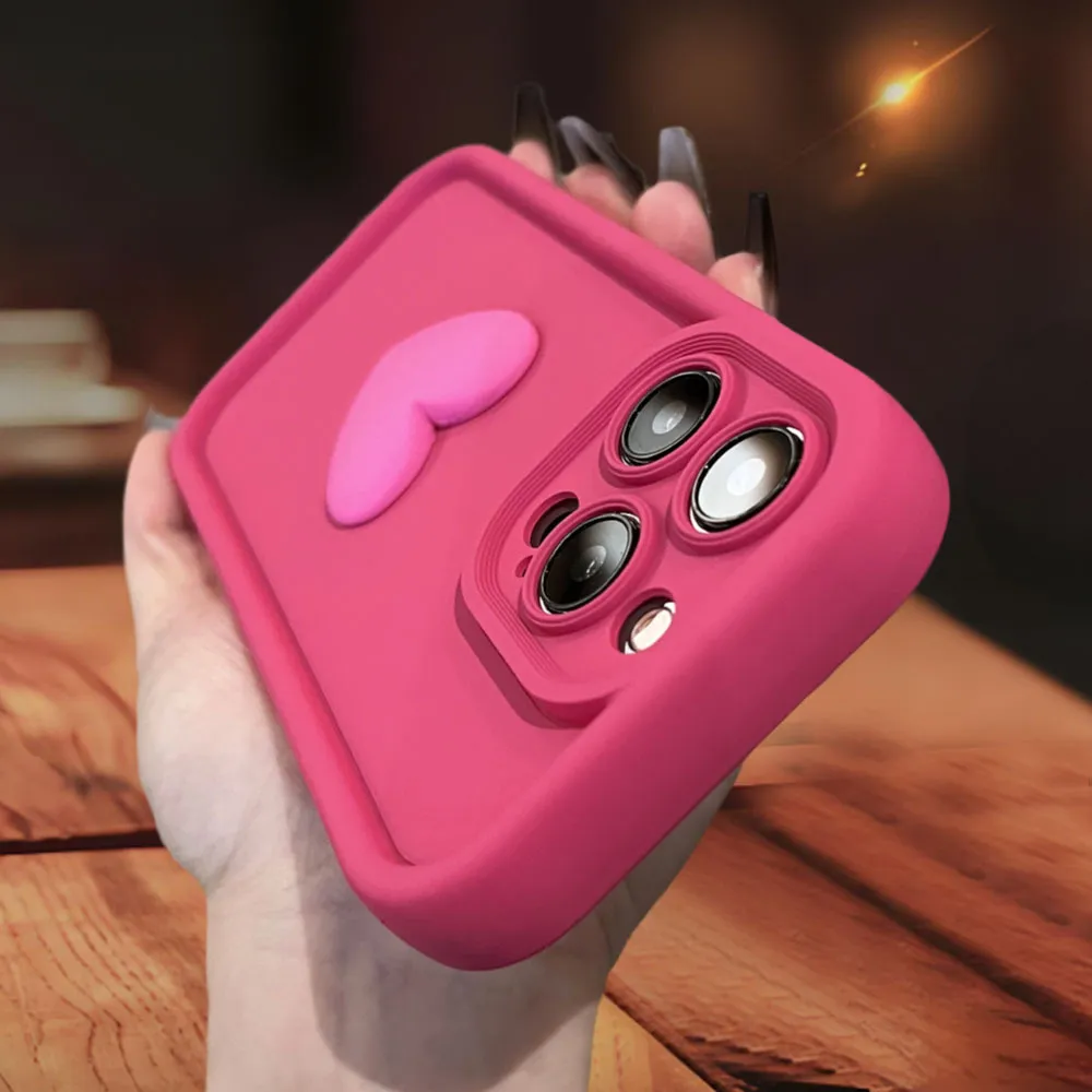 Protect your phone in style with the Three-dimensional Love Skin-friendly Frosted Lens All-inclusive Phone Case, combining fun design, comfort, and full protection for Kiwi users.