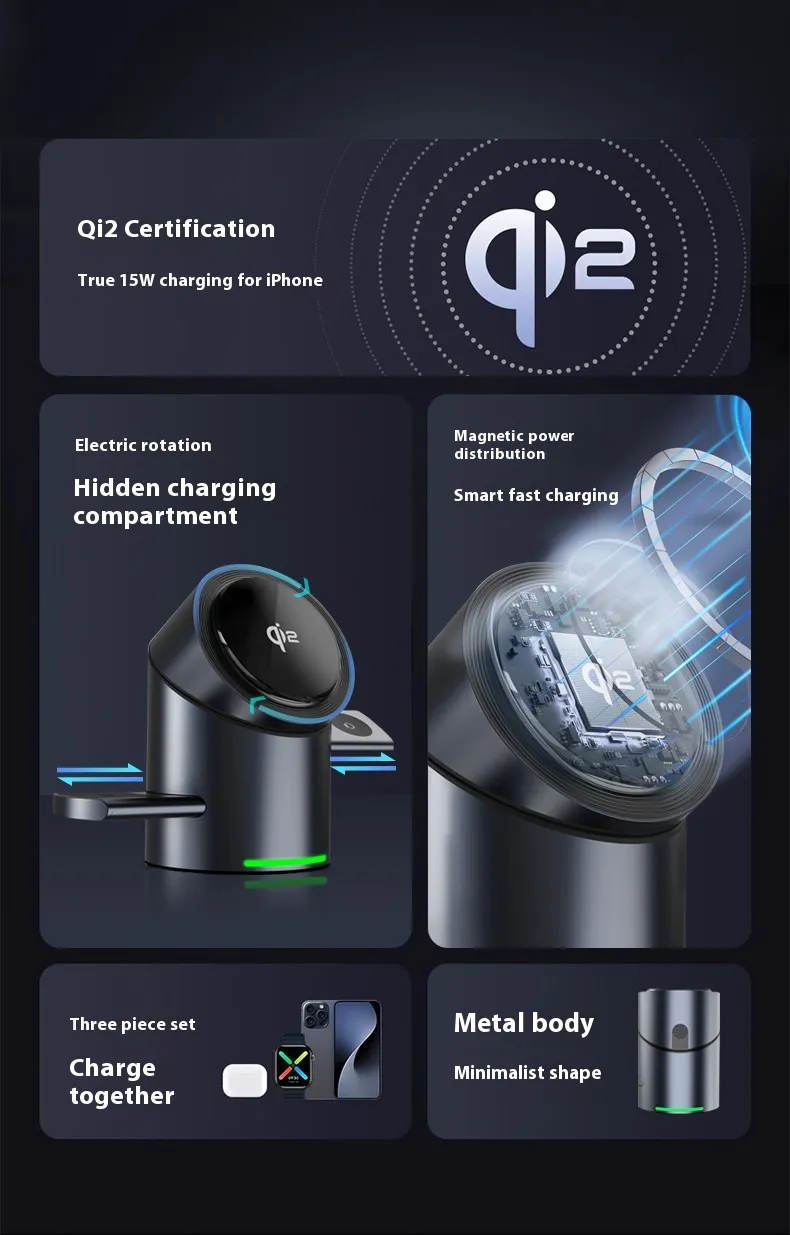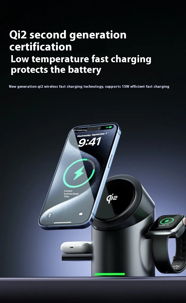 Key Features of the Three-in-One Magnetic Wireless Charger Phone Fast Charge Bracket