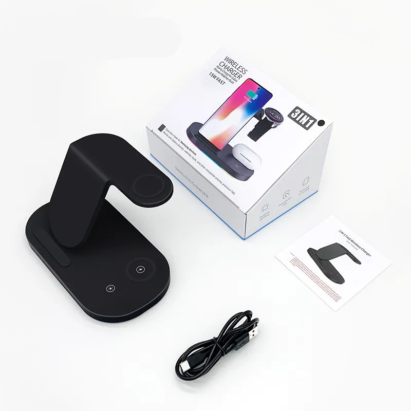 The Three-in-One Mobile Phone Wireless Charger is the all-in-one charging solution designed to simplify your life and eliminate the clutter of multiple chargers. This sleek, modern charger offers wireless charging for your smartphone, smartwatch, and wireless earbuds, all in one compact unit. Say goodbye to tangled cables and multiple charging stations—this device keeps your most essential gadgets powered up in one easy-to-use station.