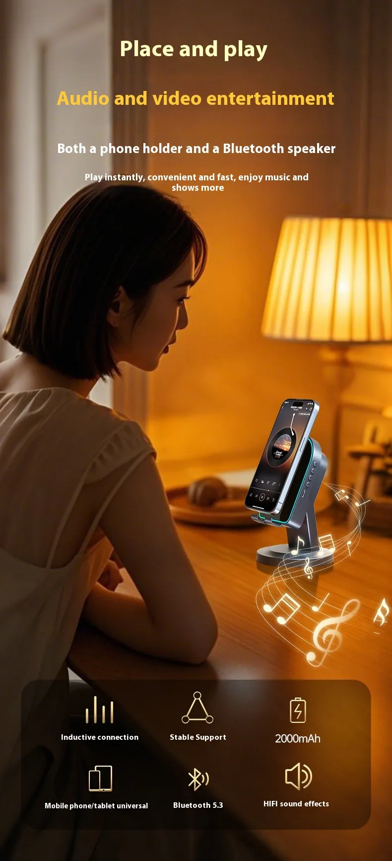 - Three-in-One Functionality – Speaker, phone bracket, and wireless induction amplifier.