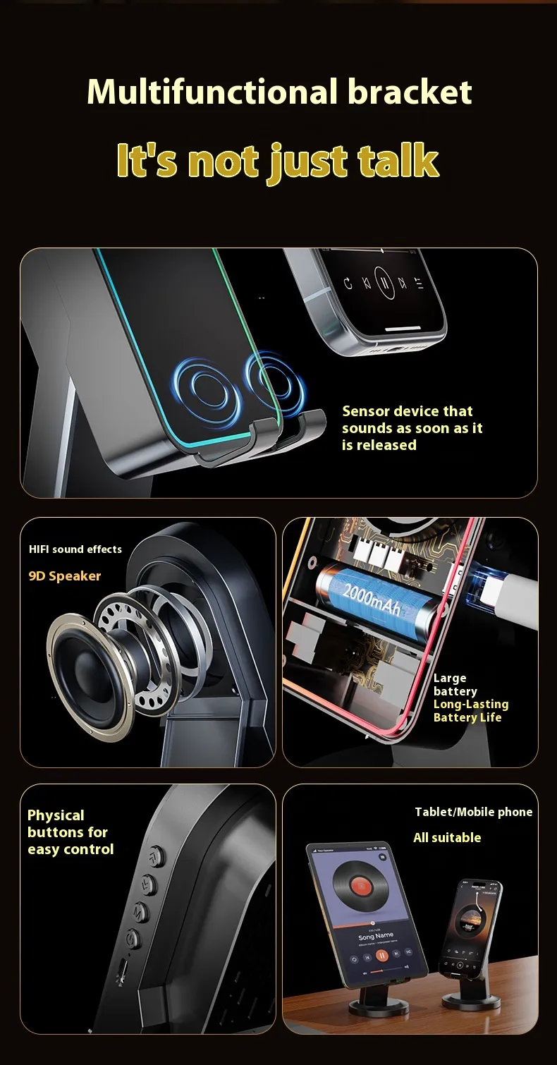 Three-in-One Wireless Induction Speaker Multi-Function Bluetooth Speaker Bracket