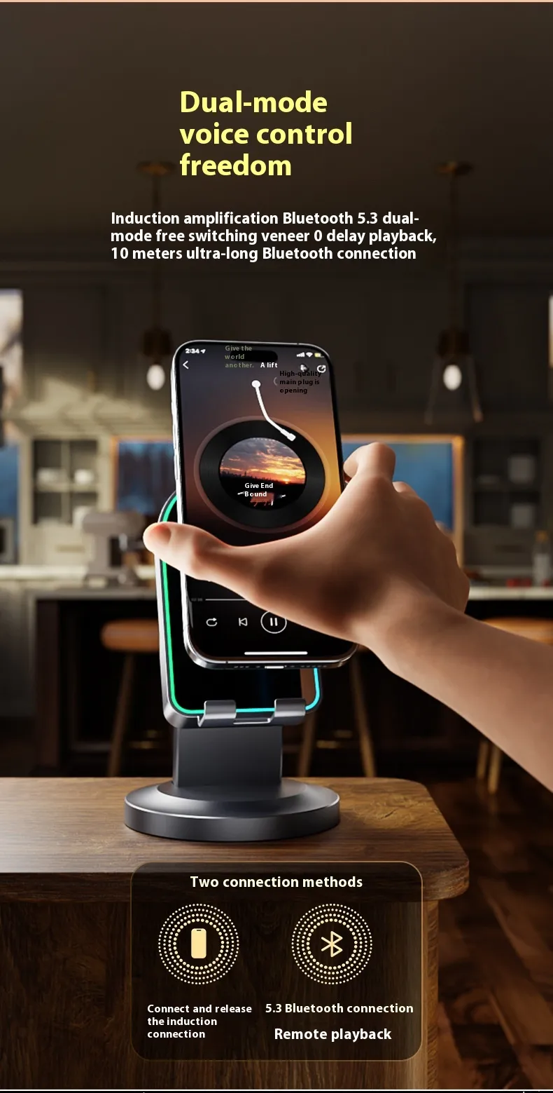 Whether you’re studying at home, hosting a small gathering, or relaxing outdoors, this multi-function wireless speaker bracket is built to suit every occasion. It’s not only a speaker but also a handy stand that keeps your phone at the perfect angle for watching movies, video calls, or following recipes in the kitchen.