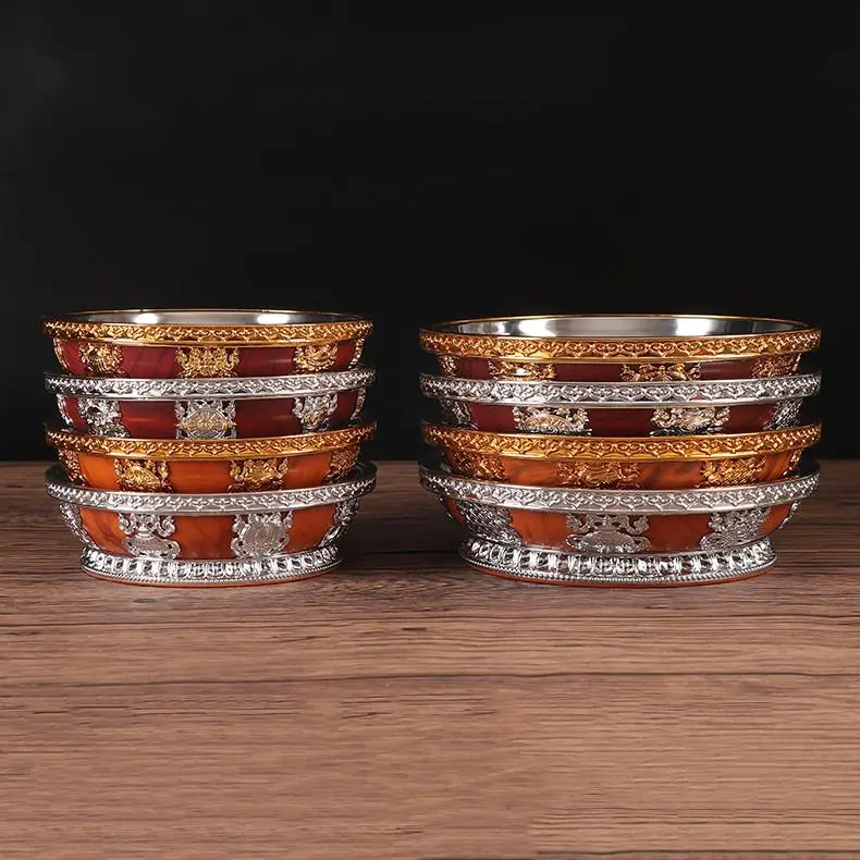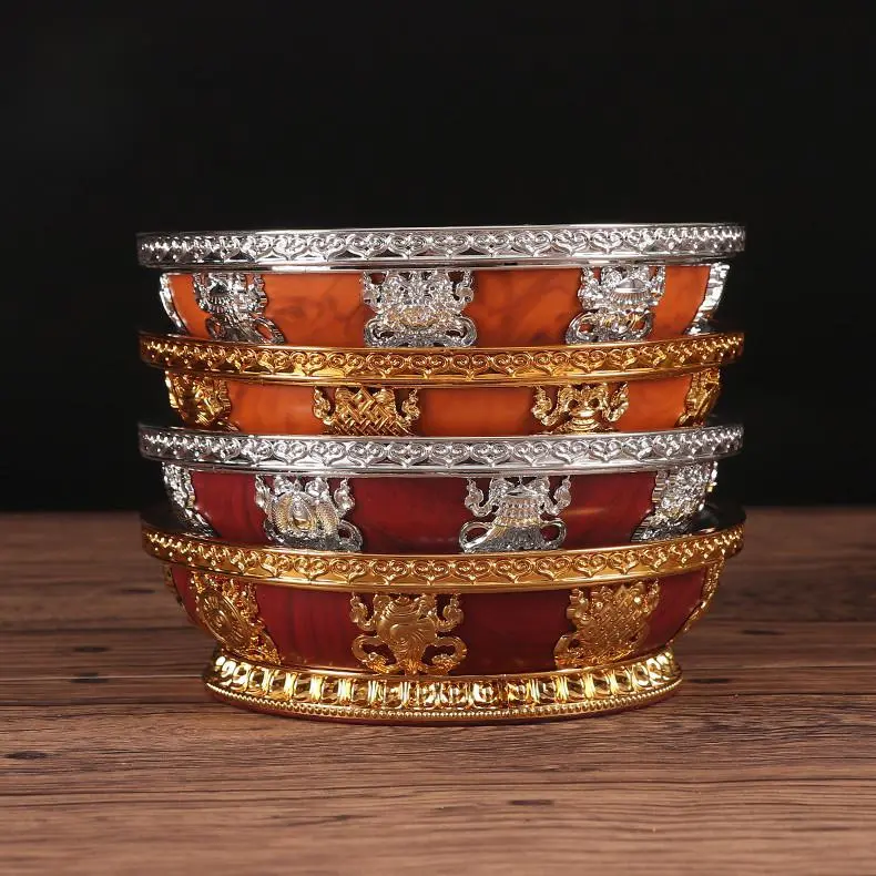 Tibetan Buddhist fruit tribute plate with stainless steel inner liner for Buddha