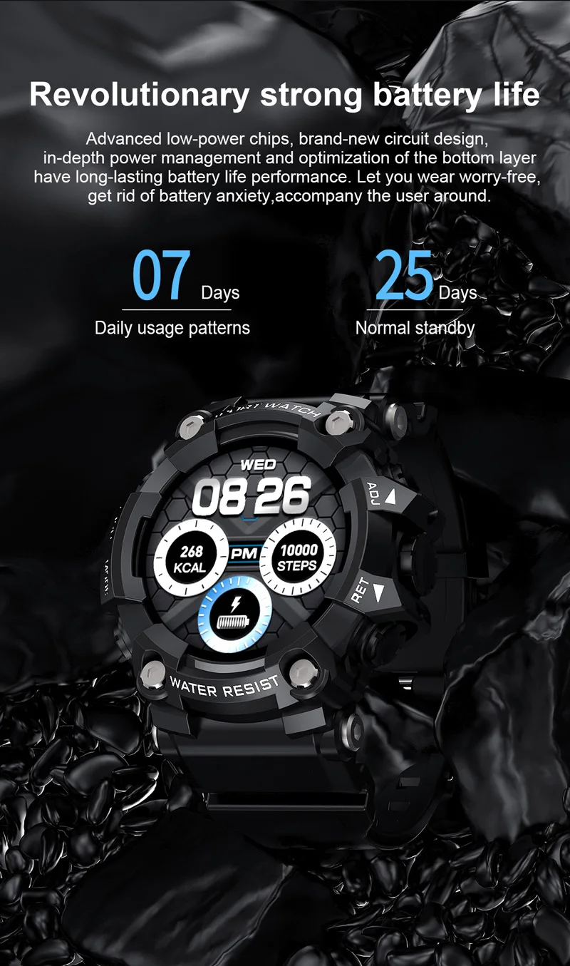 Elevate your fitness and adventure escapades with the unparalleled resilience of the Men's Sport Waterproof Smartwatch. This timepiece is not just a watch; it's a testament to rugged elegance and cutting-edge technology, meticulously tailored for those who demand excellence in every aspect of their active lives. Its sturdy build and water resistance up to 50 meters mean that whether you're braving the rapids or conquering mountain peaks, your smartwatch is as unyielding as your spirit.
