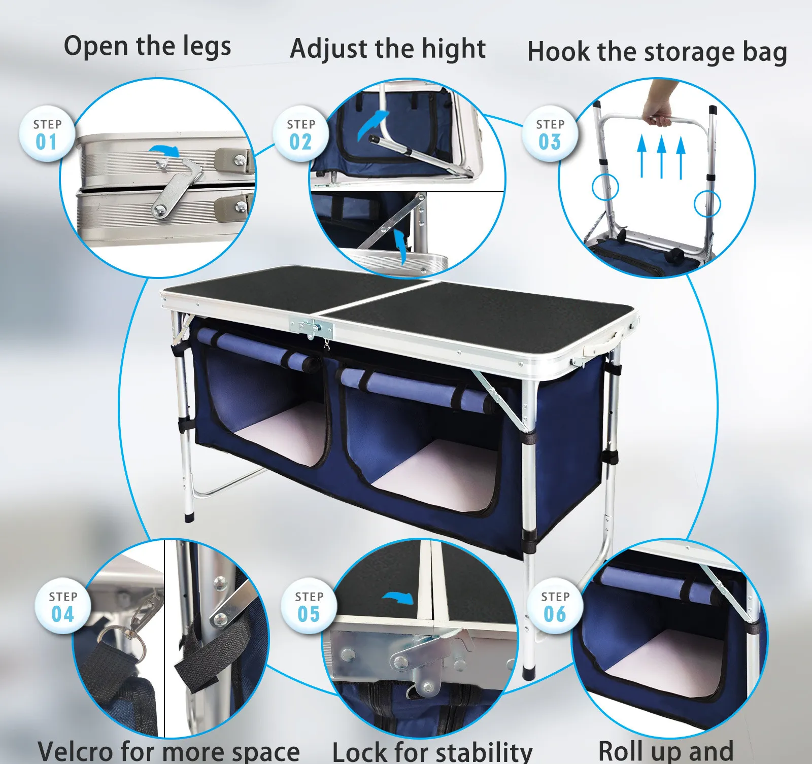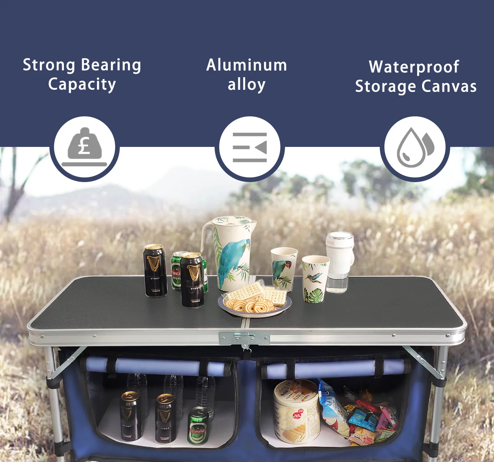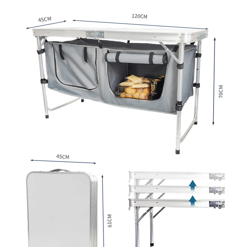 The robust construction ensures the table can hold ample weight, making it suitable for heavy camping gear, food platters, or even as a work surface during outdoor activities.