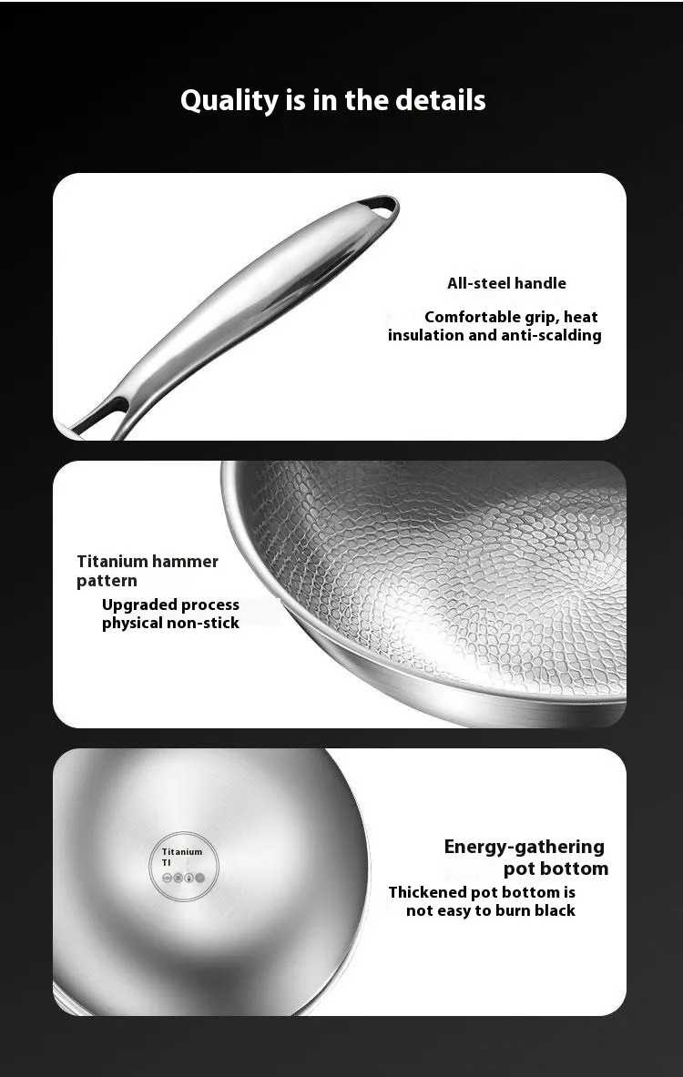 Description – Titanium Alloy Household Flat Bottom Wok for Versatile Cooking