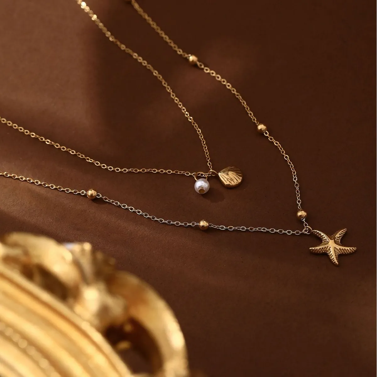 Titanium Steel High Color Retention Double-Layer Starfish Shell Necklace – A Timeless Beach-Inspired Treasure