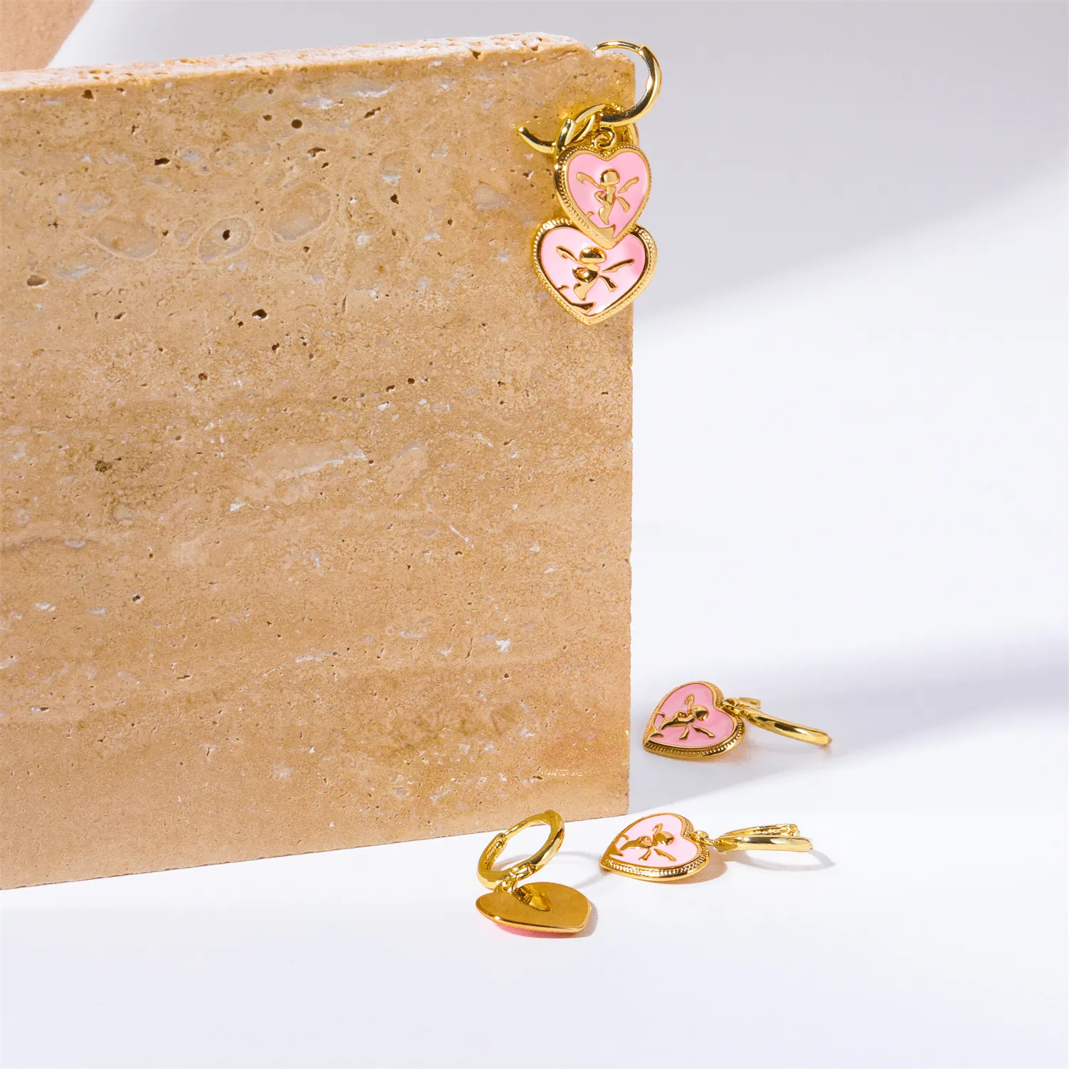 Featuring a delicate heart-shaped design, soft pink peach tones, and crafted from high-quality
