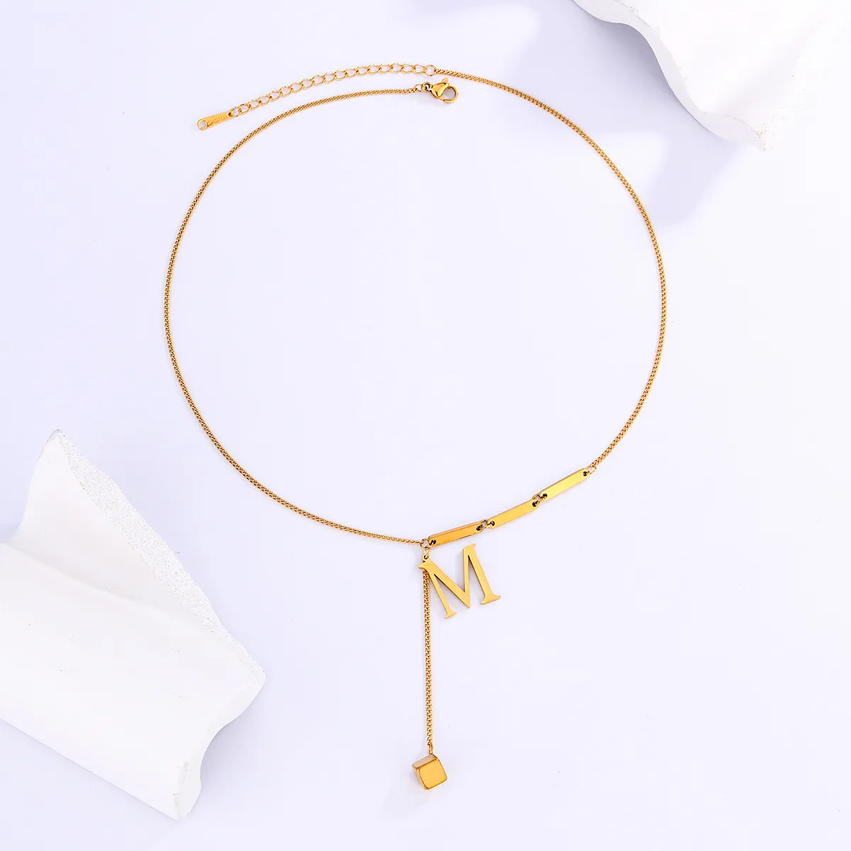 Titanium Steel Tassel 26 Letters Square Pendant Necklace