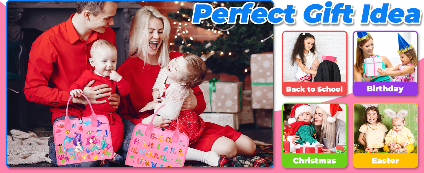 - [DECENT GIFT]: Esjay Montessori busy board for toddlers gifts is made with quality and care, sturdy enough to hold up to toddler’ s use. The covers are printed with cute dinosaur pattern and animal alphabet, makes it a decent Christmas and birthday gift for boys and girls. WARNING: CHOKING HAZARD -- Small parts. Not for children under 3 yrs.