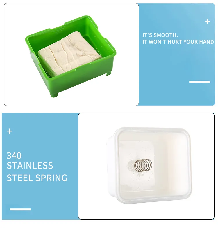 3 There is a spring in the water collecting tray, which has elasticity, can balance the force and prevent the tofu from collapsing.