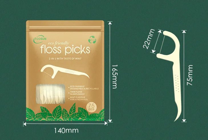 Buy Toosun Degradable Dental Floss Mint Flavor Stick for eco-friendly, effective oral care. Removes plaque and food particles, leaving your mouth fresh with biodegradable floss sticks.