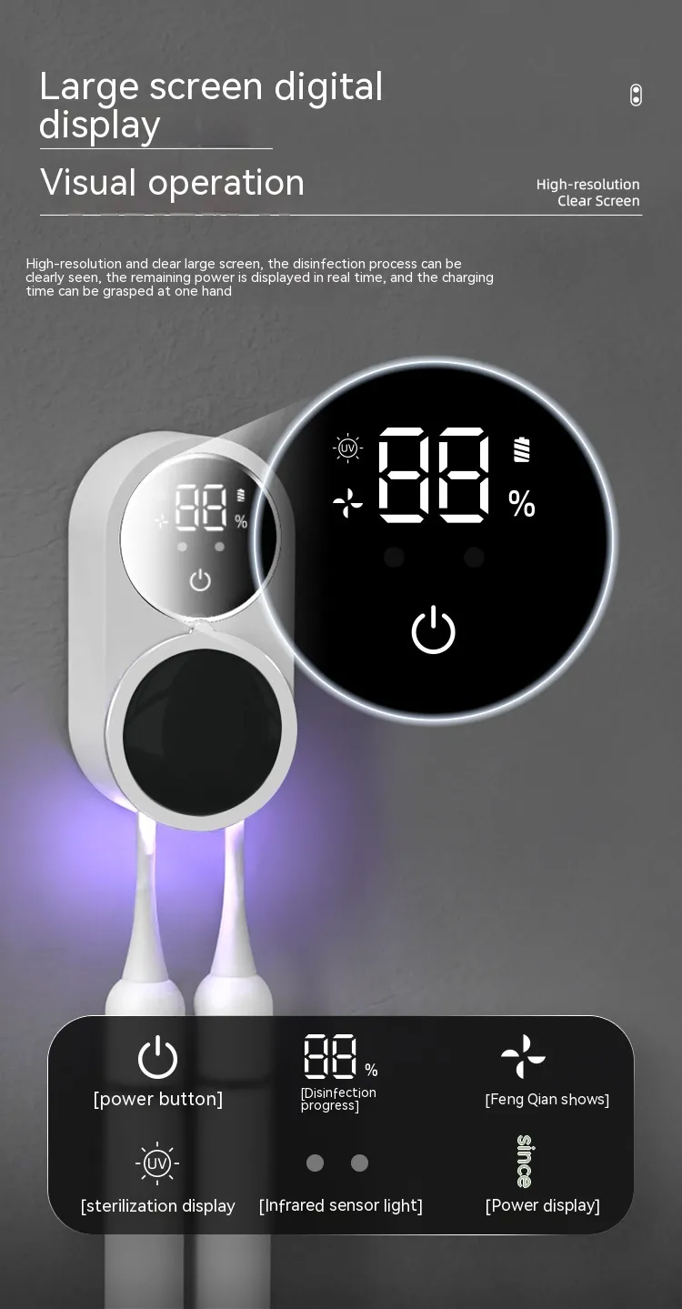 【Intelligent Sensor】With an intelligent sensor feature, the toothbrush sanitizer automatically opens and closes with a simple wave of your hand or slight touch, thanks to its sensing lights.