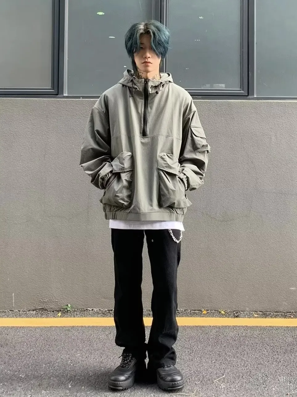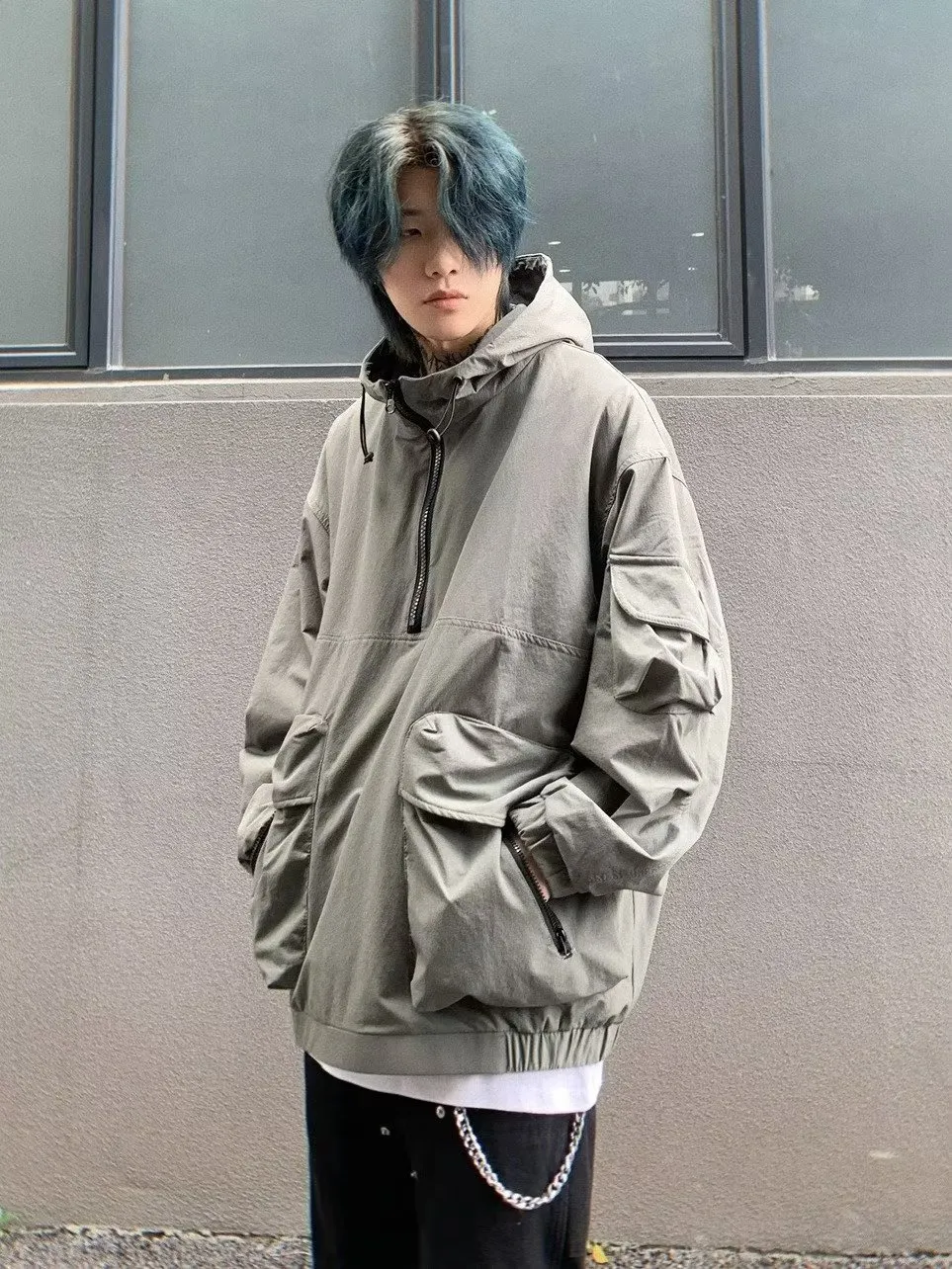 Top Hooded Jacket Loose Half Zip Windbreaker Workwear
