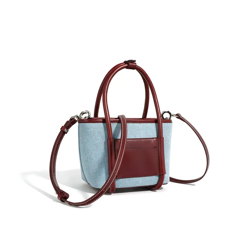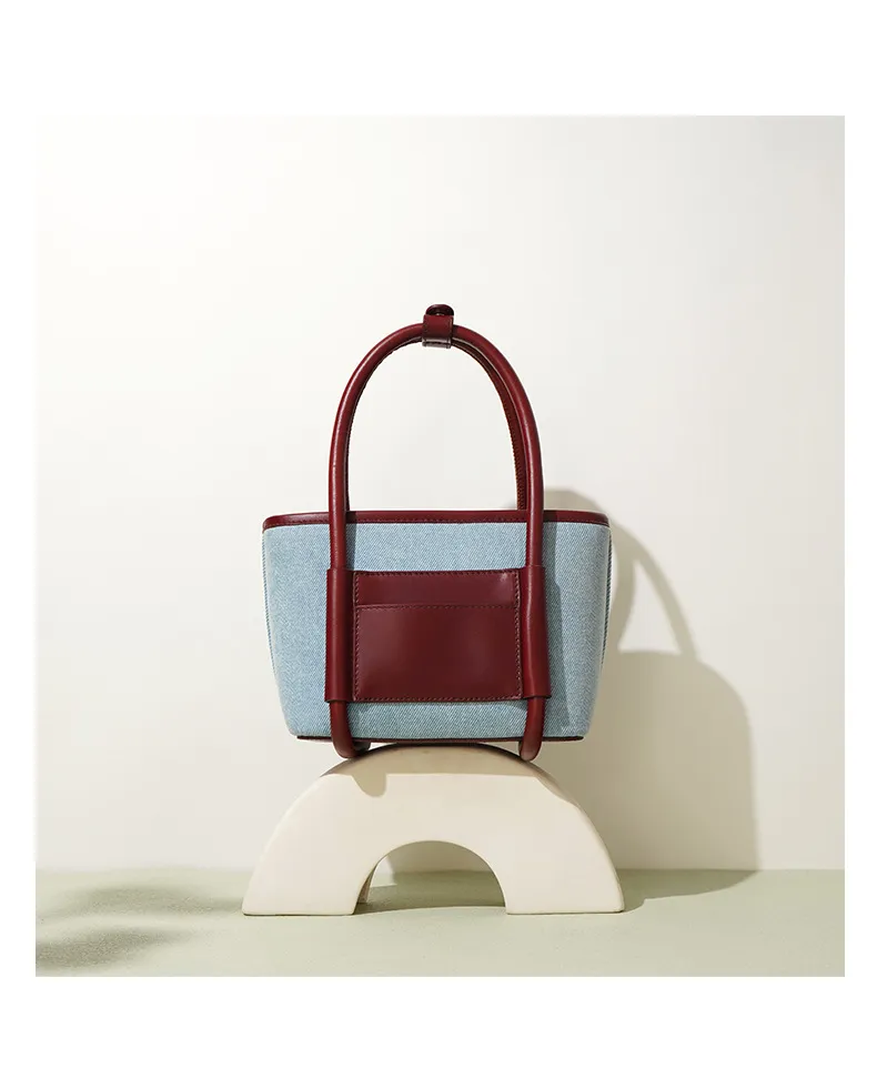 The niche splicing design of this bag is what truly sets it apart. The careful blending of cowhide and denim cloth creates a unique, eye-catching effect that makes the bag stand out. The contrast between the two materials enhances the overall aesthetic, giving the bag a modern yet timeless appeal. Whether you’re pairing it with casual jeans or a more formal outfit, this bag brings sophistication and individuality to any ensemble.