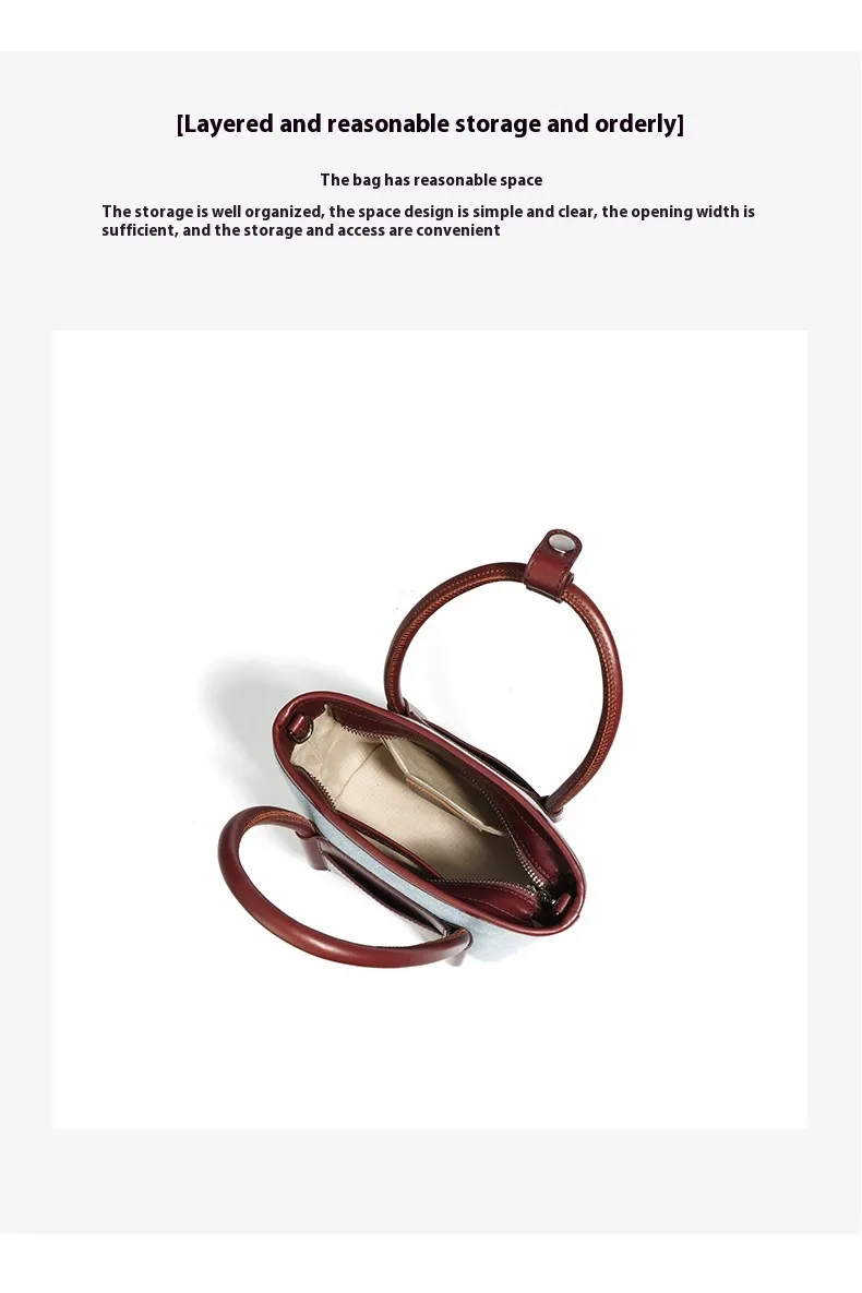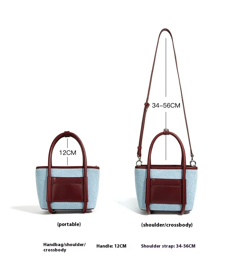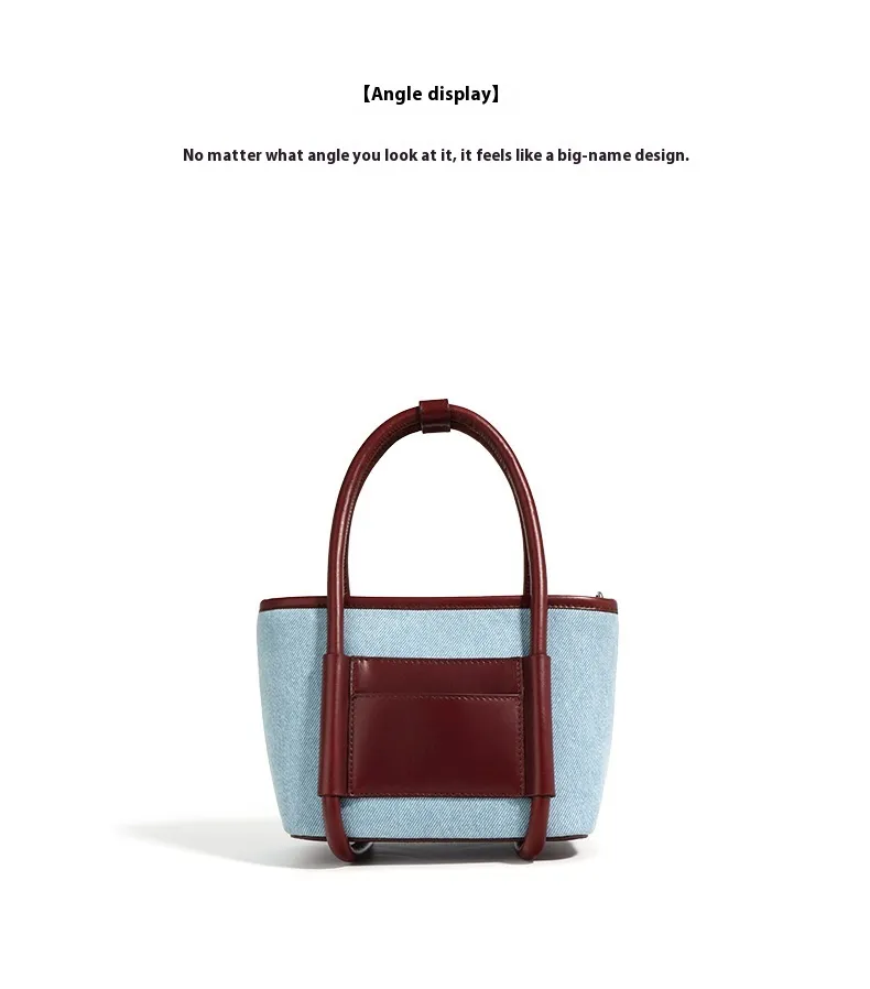 Top Layer Cowhide With Denim Cloth Vegetable Basket Bag Niche Splicing Single Shoulder Crossbody