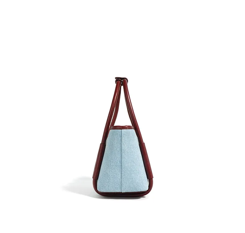 This bag features premium top layer cowhide, known for its durability, smooth texture, and luxurious feel. The cowhide material is carefully selected to withstand daily wear while maintaining its elegance over time. Paired with denim cloth, this bag strikes a harmonious balance between casual comfort and high-end craftsmanship.