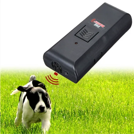-Emits piercing ultrasonic tone that dogs hate