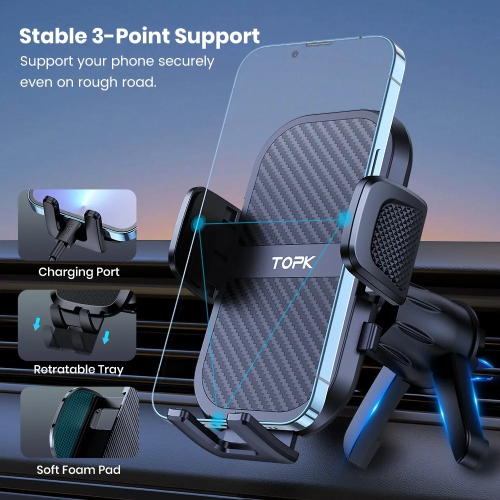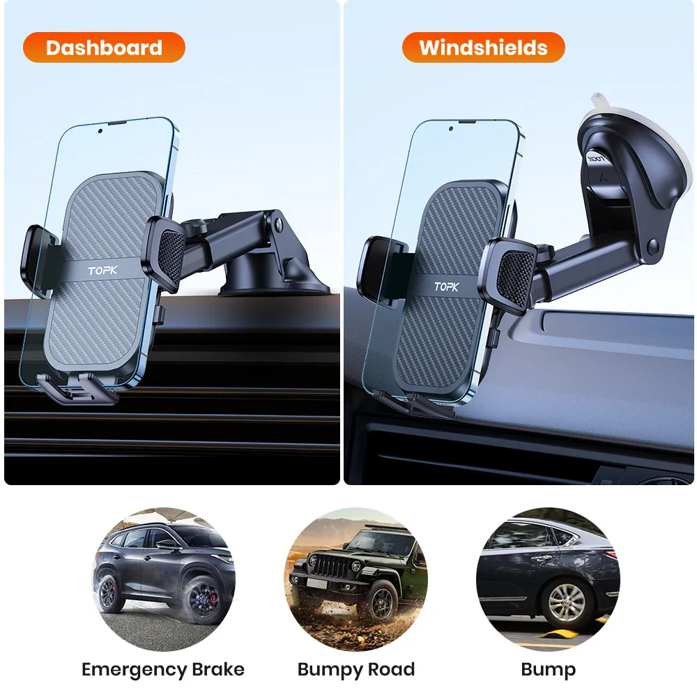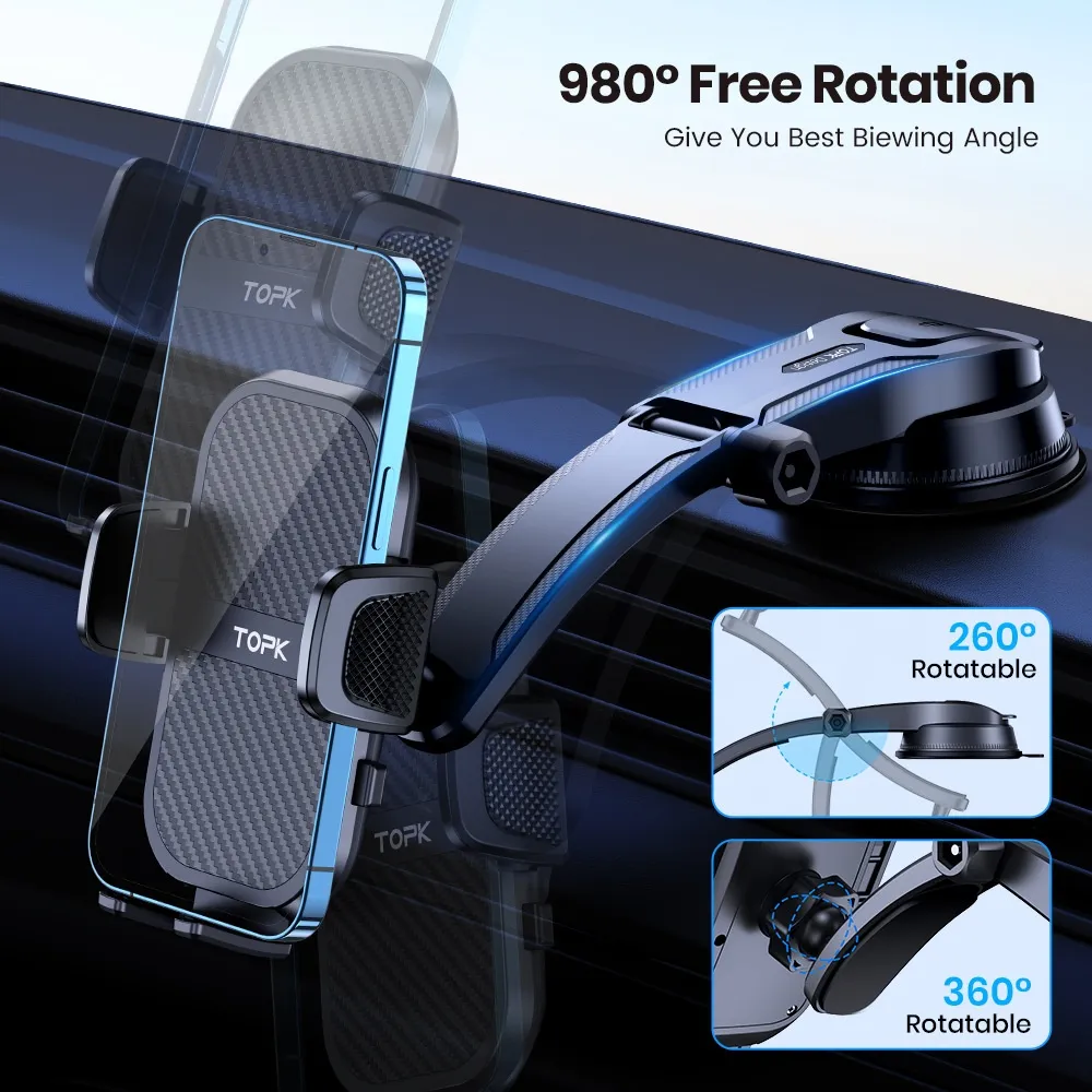 Equipped with a high-strength suction cup, this phone holder attaches firmly to your windshield or dashboard without slipping. The 360° adjustable rotation allows you to position your phone at the perfect angle, ensuring optimal visibility and safer driving.