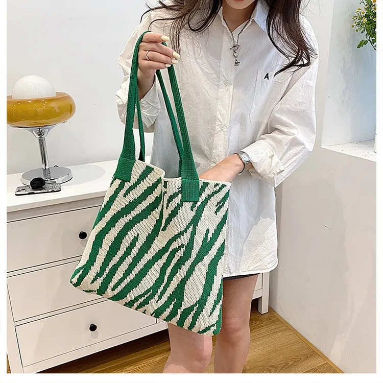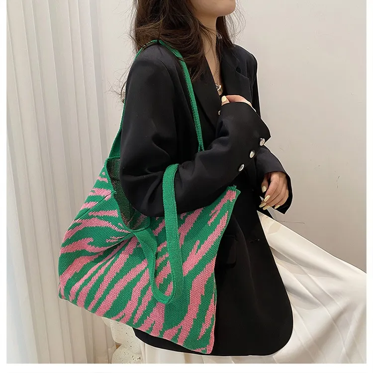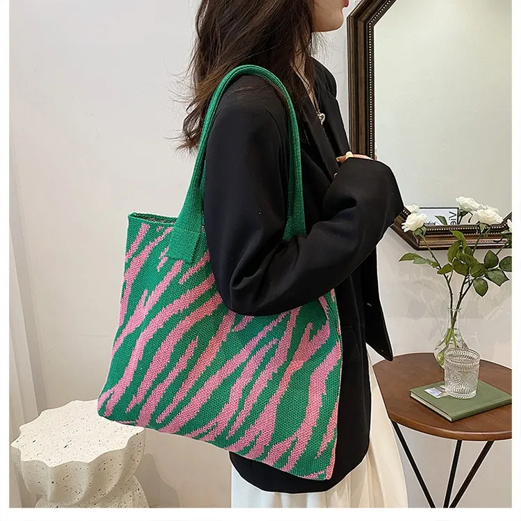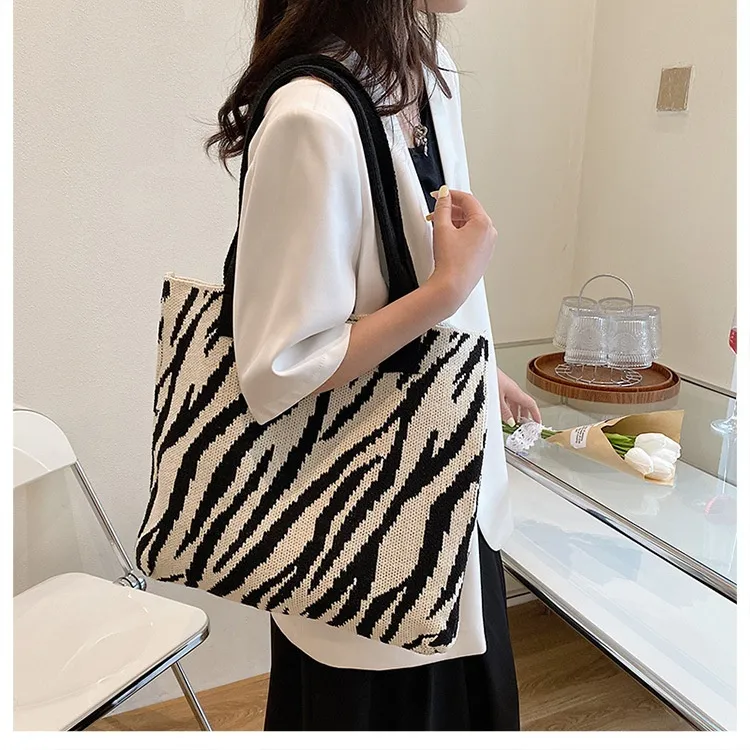 Tote New Large Capacity Single Shoulder Zebra Pattern Knitted Bag Women