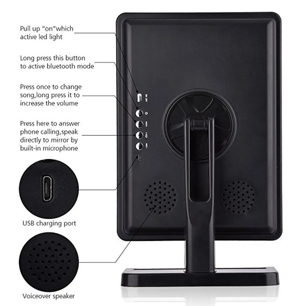 Touch Screen Makeup Mirror With 20 LED Light Bluetooth Music Speaker 10X Magnifying Mirrors Lights