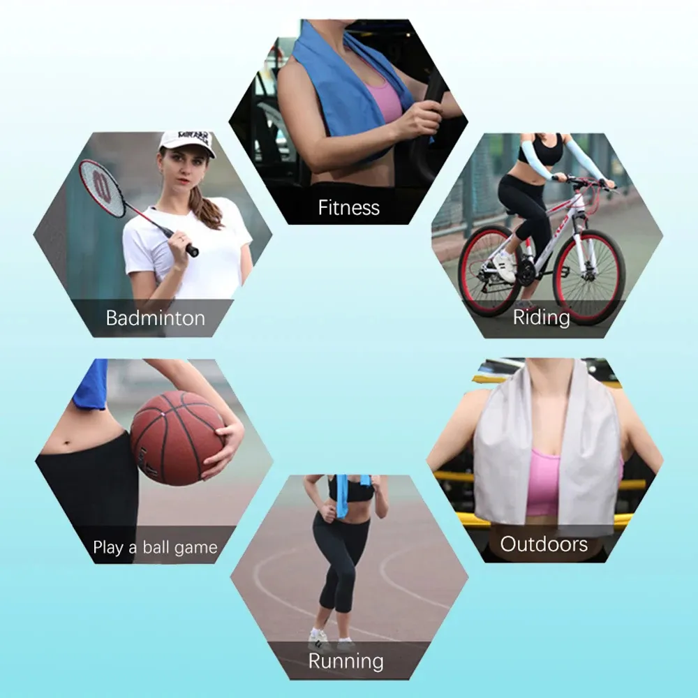 【SAFE & ECO-FRIENDLY】-- Cooling towel is made of super ice hyper-evaporative breathable material. Working on the physical evaporation of moisture. No chemicals are used in the making of the cooling towels, free from any chemical additive and smell.