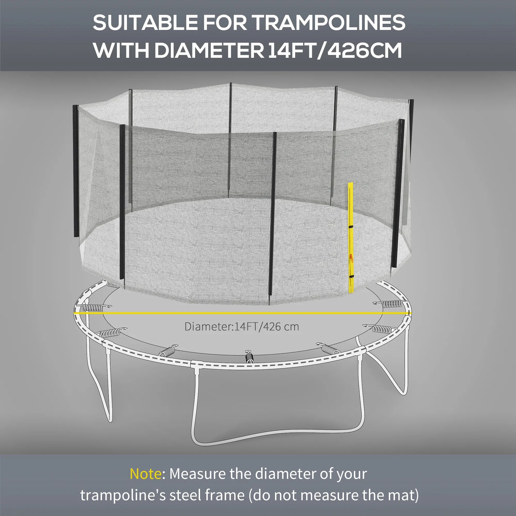 Description:Keep your children safe and protected with the Soozier trampoline replacement net. It fits 14ft trampolines with eight straight poles to replace your old or ripped safety net. Our trampoline enclosure is made from tough, weatherproof polyethylene, allowing indoor and outdoor use. The entrance of the net includes a sealable zippered system to maximize protection. An important safety accessory, it creates a trampoline you can trust (enclosure net ONLY, no poles included). Features: - Our trampoline replacement net is a universal fit for 14ft trampolines with eight poles - The 5.9' height keeps children and loved ones from falling sideways off your trampoline - Simple to install with its included hooks - Zipper entry for full protection and ease of use - Enclosure only, no poles included Specification: - Color: Black and Blue - Material: PE - Overall Dimensions: 167.75" Dia x 70.75" H - Pole Cover: 2.75" Dia - Zipper Door: 47.25" W - Suitable for Trampoline Size: 14ft Dia - Item Label: A00-017V01BK Package Includes: -1 x Trampoline Replacement Net; Keep your children safe and protected with the Soozier trampoline replacement net. Features: - Our trampoline replacement net is a universal fit for 14ft trampolines with eight poles - The 5.9' height keeps children and loved ones from falling sideways off your trampoline - Simple to install with its included hooks - Zipper entry for full protection and ease of use - Enclosure only, no poles included Specification: - Color: Black and Yellow - Material: PE - Overall Dimensions: 167.75" Dia x 70.75" H - Pole Cover: 2.75" Dia - Zipper Door: 47.25" W - Suitable for Trampoline Size: 14ft Dia - Item Label: A00-017V00BK Package Includes: -1 x Trampoline Replacement Net;.