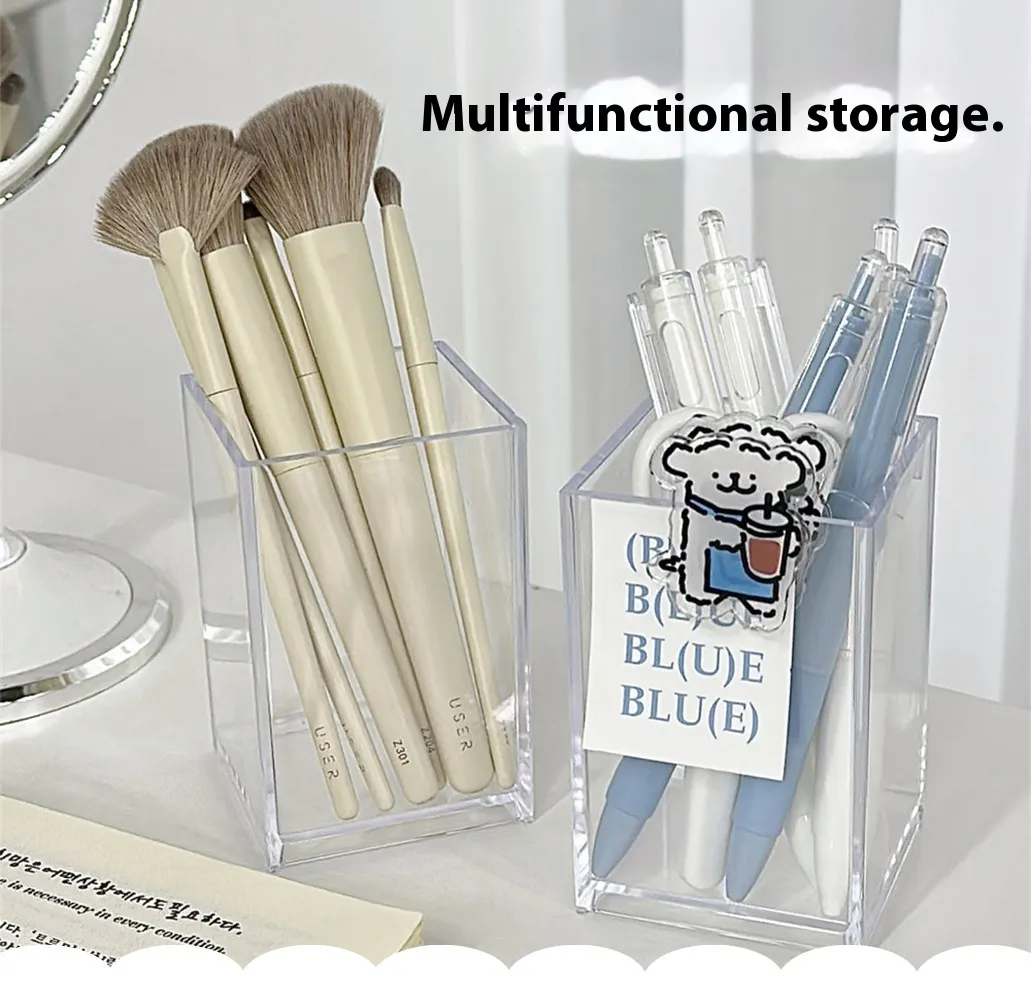 Transparent Acrylic Pen Holder Office Desk Surface Panel Stationery Student Makeup Brush Storage Bucket