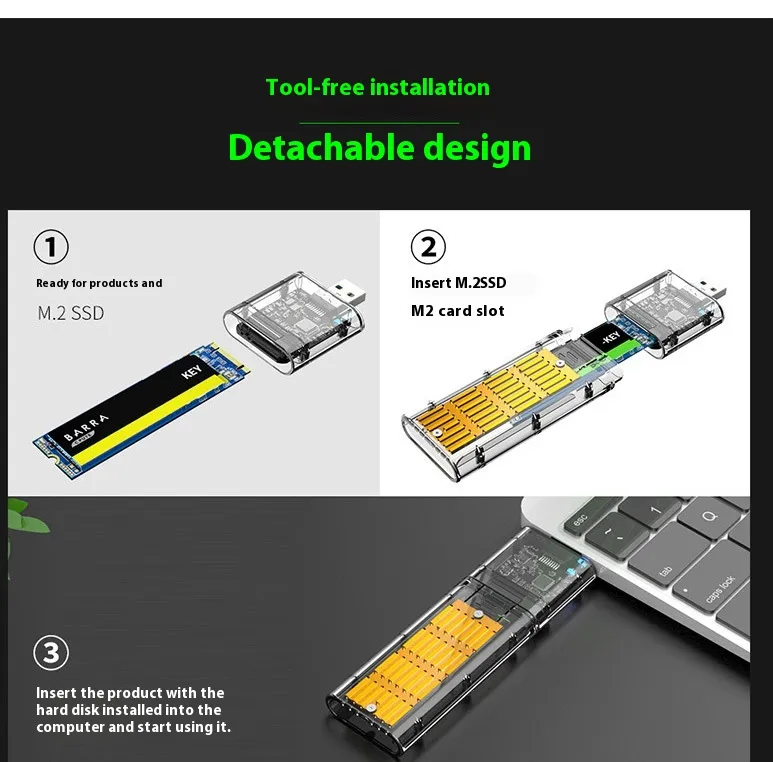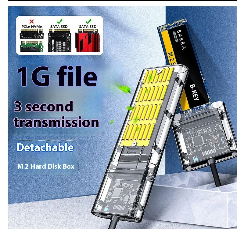 The Transparent and Creative Solid State Mobile Hard Disk Box USB Interface stands out for its combination of cutting-edge SSD technology and stylish design. It provides fast, reliable performance while showcasing the internal SSD in a sleek, transparent enclosure. If you're looking for a unique and high-performance portable storage solution, this is the perfect choice.