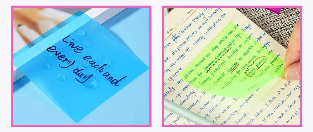 stickies can smoothly be written on with various pen types without smudging, pooling ink or even bleeding through. Suitable for pens,