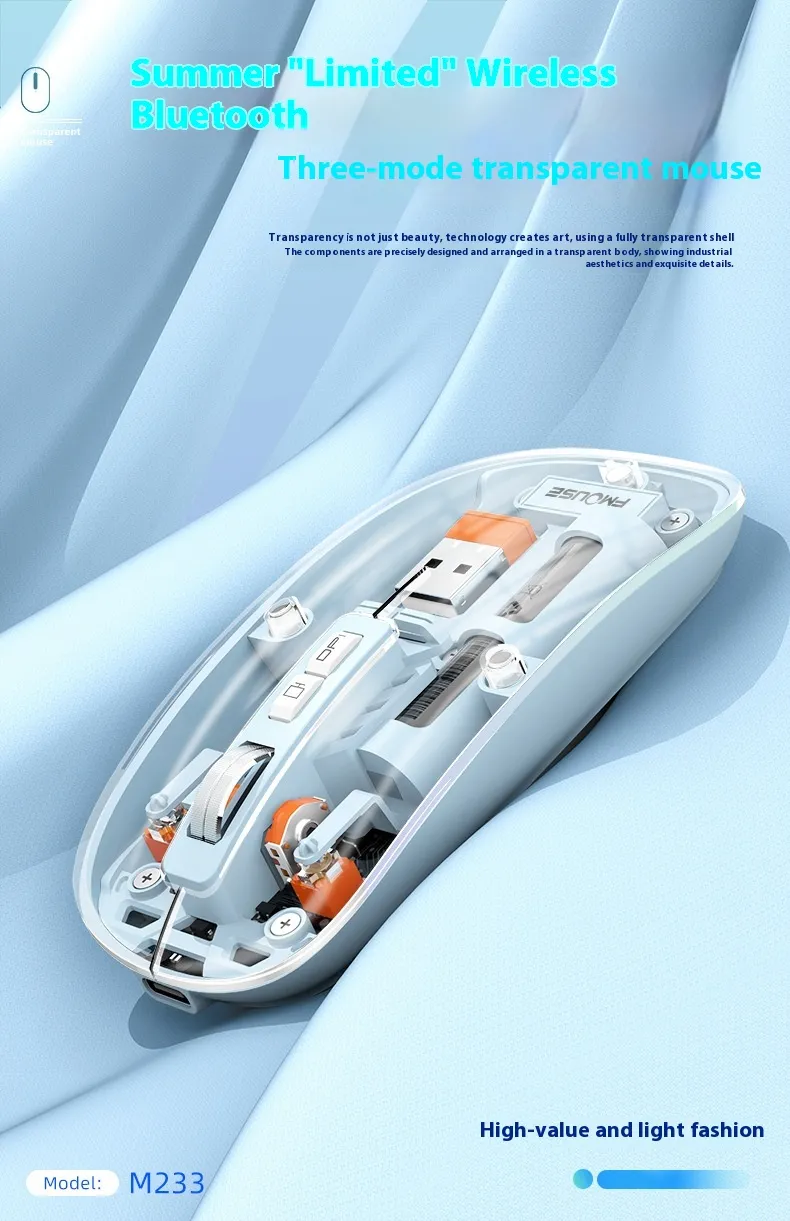 Enhance your workspace with the Transparent Wireless Mouse, combining style, functionality, and convenience for everyday use at home or in the office.