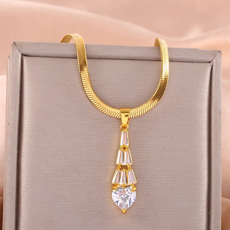 Trapezoidal Crystal Water Drop Pendant Necklace