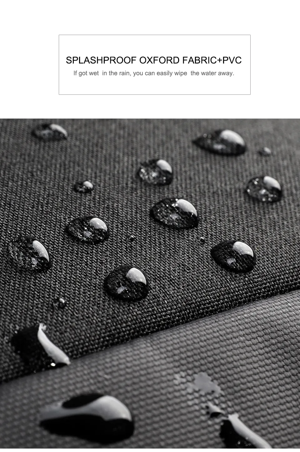 The bag is made of anti-ion waterproof encryption Oxford cloth + PVC stitching, waterproof splash, anti-dirty, good breathability and wear