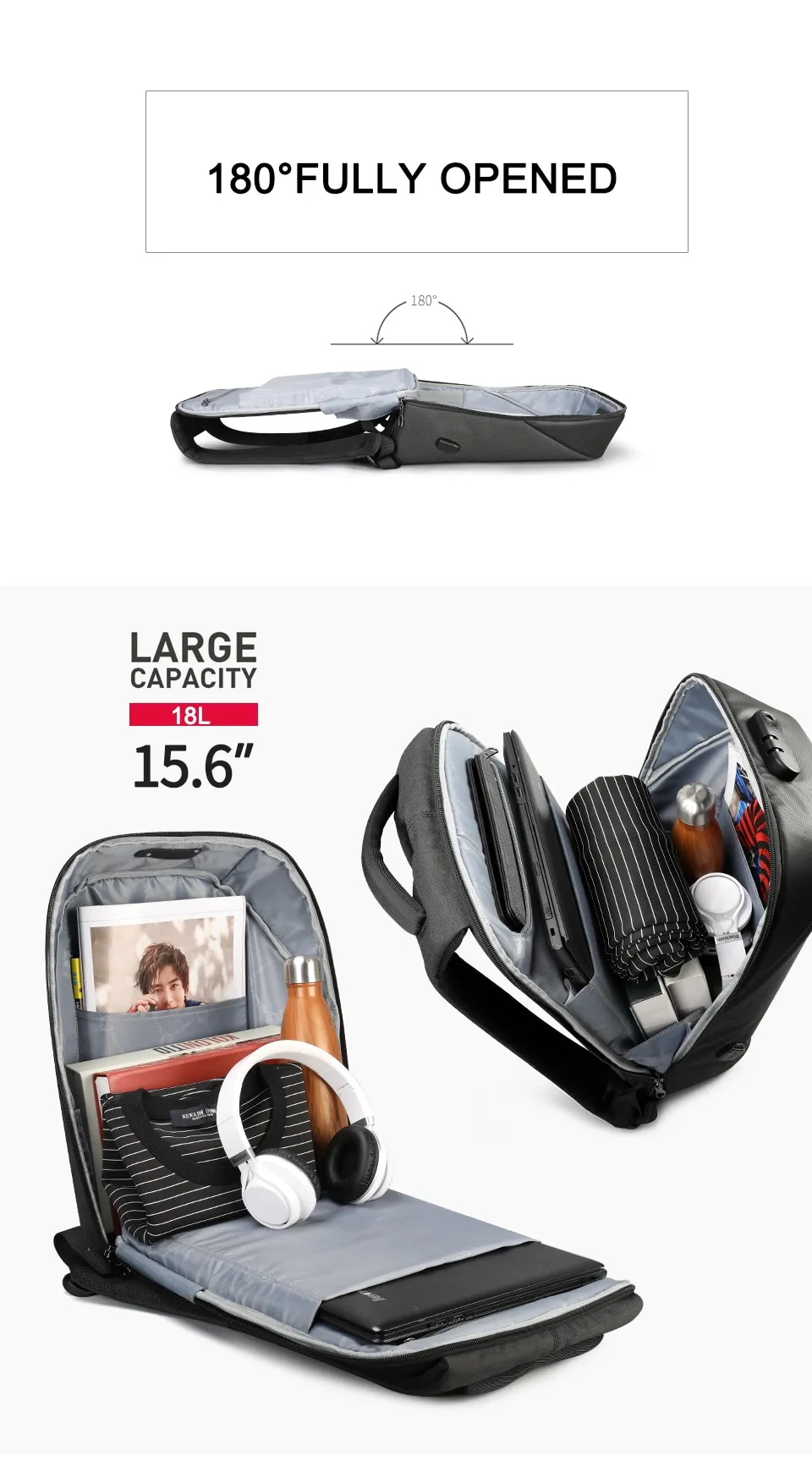 Fashion casual three-dimensional anti-theft backpack: strength anti-theft system, humanized storage design, ergonomic design, USB charging