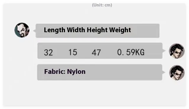 DescriptionMaterialClothProduct AttributesOrdinaryPackage Size350*60*470(1mm)