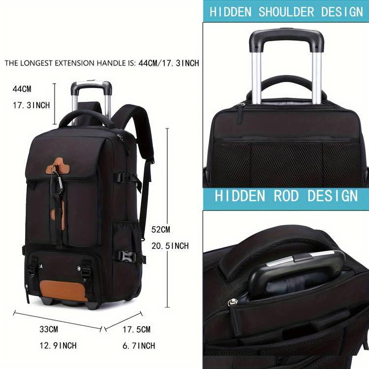 The Travel Rolling Backpack combines the convenience of a rolling suitcase with the practicality of a traditional backpack. Whether you’re a professional looking for a reliable laptop bag or a student who needs a durable and spacious backpack for school, this rolling backpack is the perfect solution. Its sturdy design, spacious compartments, and easy-to-carry wheels make it the ultimate choice for those who value convenience and comfort on the go.