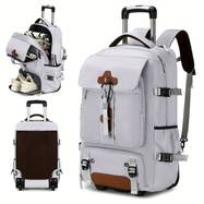 The Travel Rolling Backpack is a durable and multifunctional backpack designed to make travel and commuting easier. Featuring a dedicated laptop compartment, shoe storage, and adjustable shoulder straps, this rolling backpack offers comfort and practicality for both business and leisure. Suitable for a 17-inch laptop, it’s an ideal choice for professionals and students who need a reliable bag for work, school, and travel. With its sleek white design and sports style, this backpack is perfect for anyone who values both functionality and style.