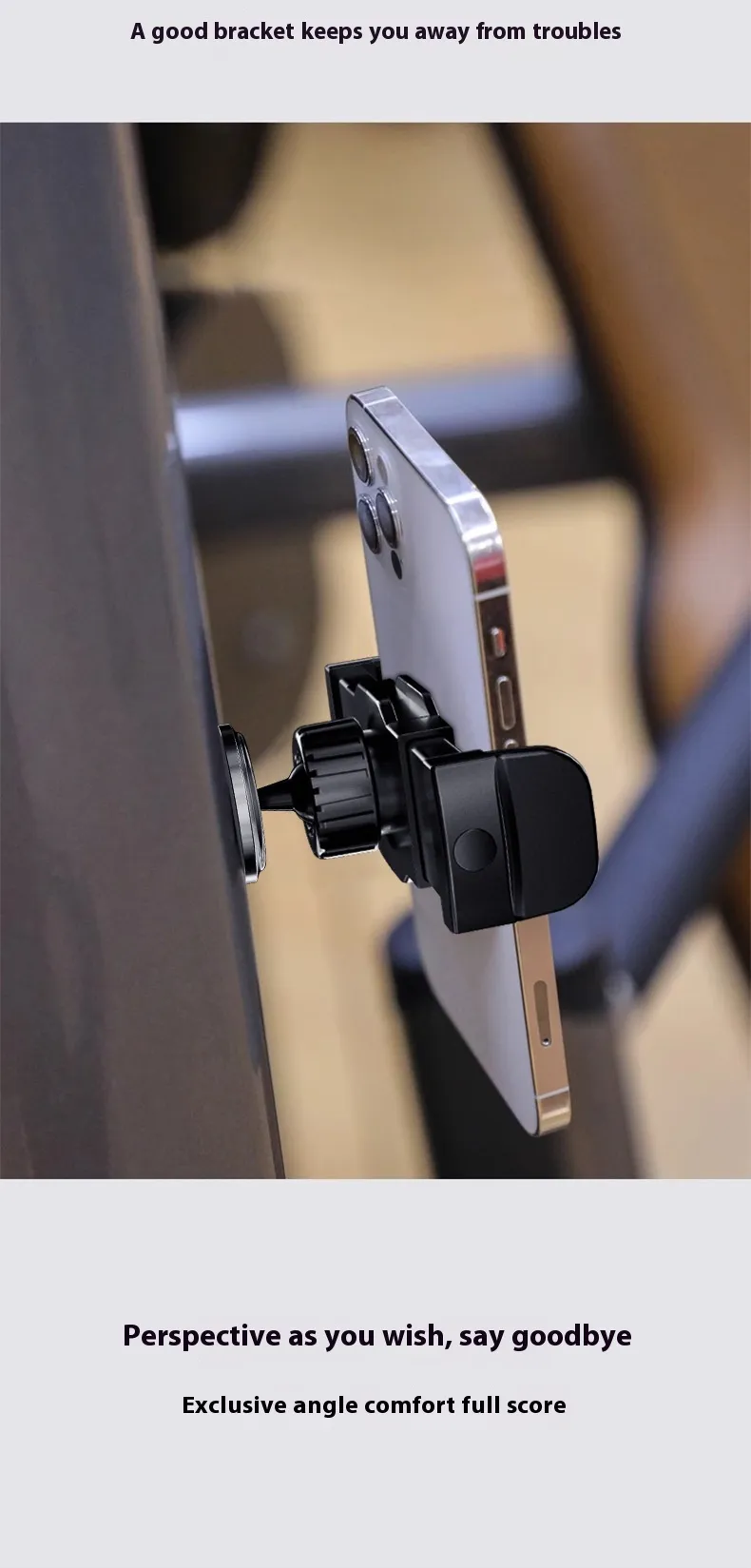 Featuring strong magnetic suction and a flexible hanging design, this bracket securely holds your phone on treadmills, walls, or other surfaces. Its compact and lightweight construction makes it portable for both indoor and outdoor workouts. With adjustable angles, you can easily view your screen for music, workout apps, or video calls while staying active.