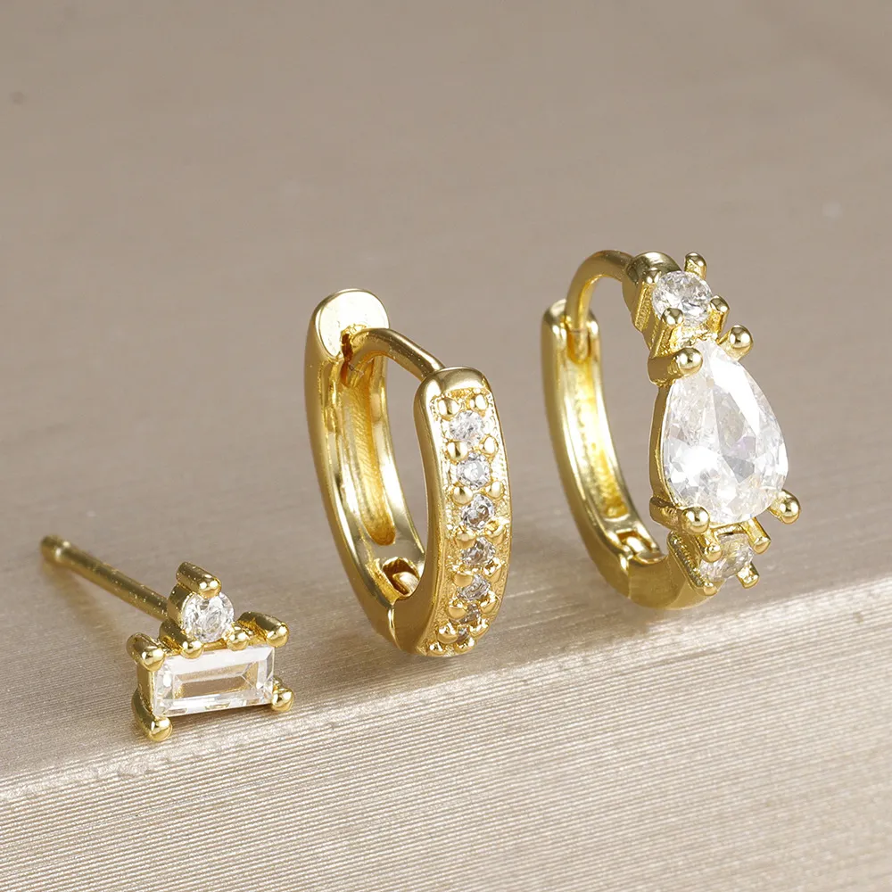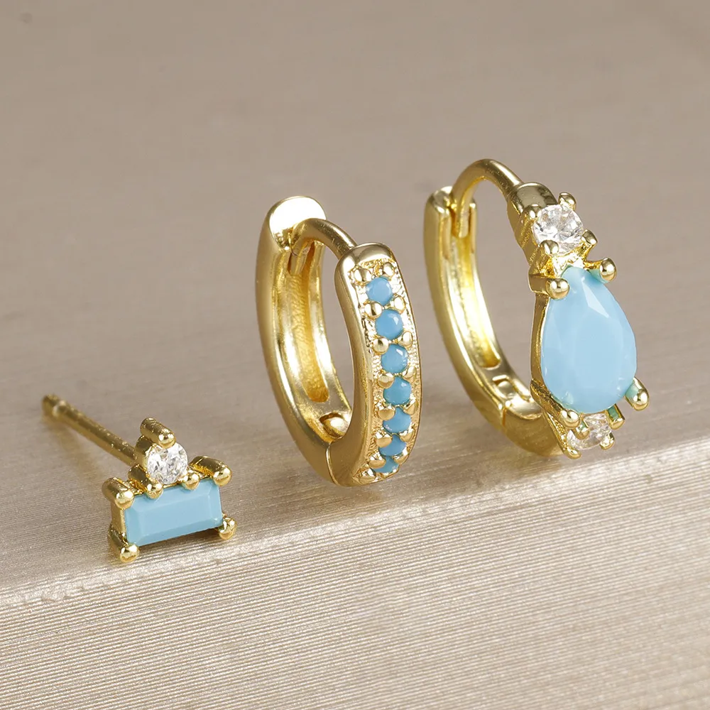 Trendy Water Drop Earrings Fashion Geometry Pattern Rectangular Inlaid