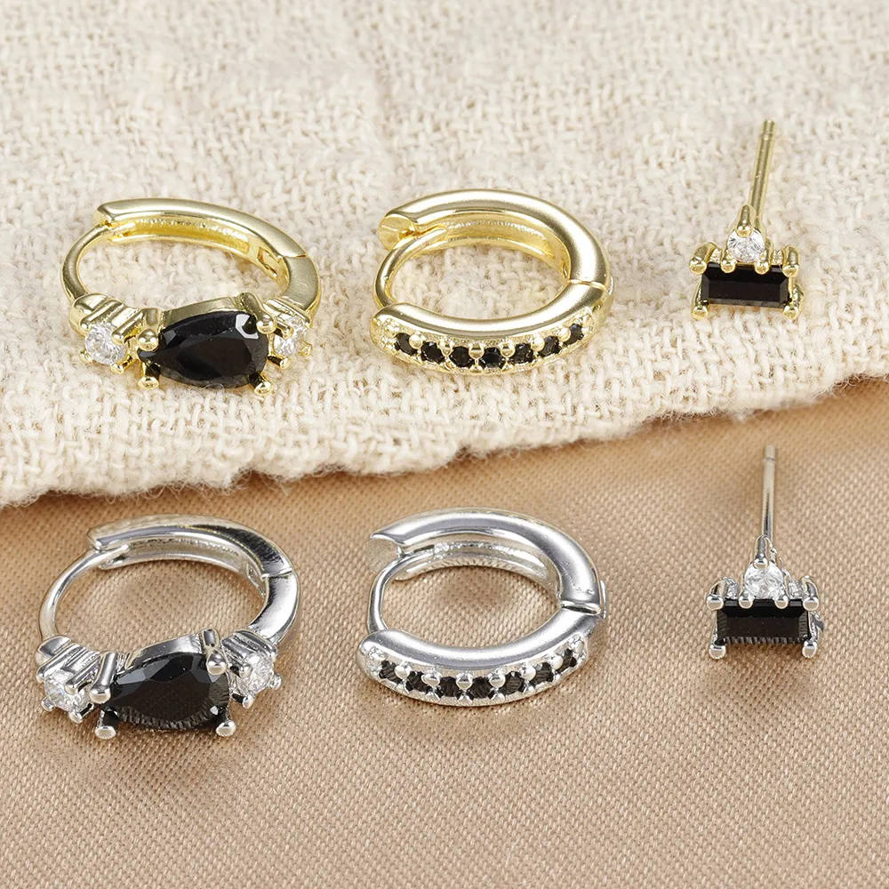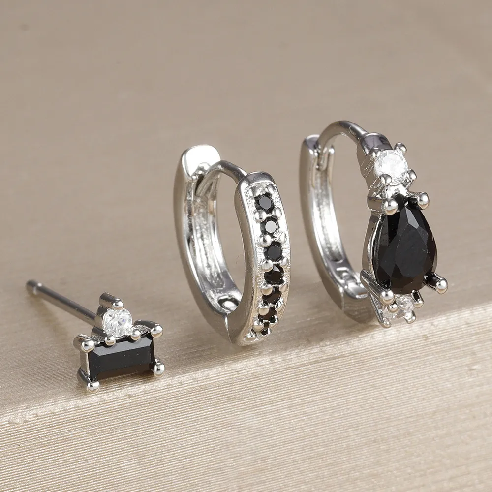The earrings combine water drop shapes with rectangular inlays, creating a harmonious balance between soft curves and structured lines. This bold yet minimalist design adds a modern twist to any outfit.